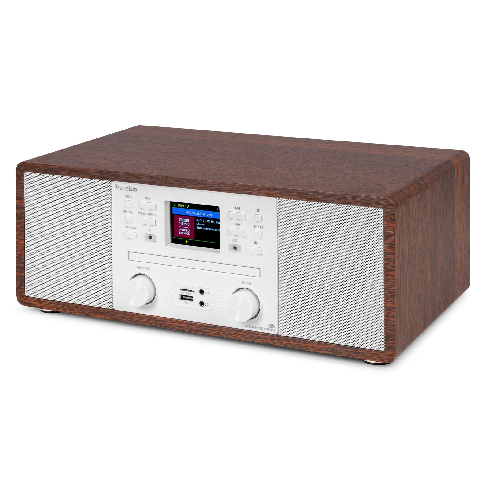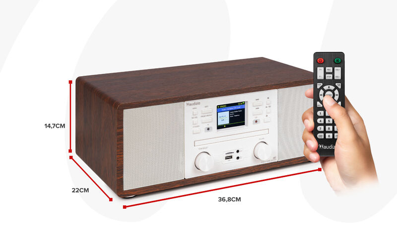 AUDIZIO AVOLA WOOD Digital Music System CD Player / Bluetooth/ USB/ SD/ DAB +/ Internet Radio 102.290. Παίξτε όλα τα είδη μουσικής με το ραδιόφωνο Avola all-in-one! Internet ραδιόφωνο με το οποίο μπορείτε να λαμβάνετε τους πιο καθαρούς ραδιοφωνικούς σταθμούς από όλον τον κόσμο. Λειτουργεί μέσω δικτύου WiFi. Επιπλέον, μπορείτε να χρησιμοποιήσετε το Avola ως ψηφιακό ραδιόφωνο DAB+, αλλά και ώς παραδοσιακό ραδιόφωνο FM. Αν έχετε βαρεθεί τους ραδιοφωνικούς σταθμούς, απλώς μεταδώστε τα αγαπημένα σας τραγούδια μέσω Bluetooth. Για τους λάτρεις των δίσκων CD, μπορείτε να παίξετε και να ακούσετε τα παλιά σας και αγαπημένα σας CD. Με το ραδιόφωνο Avola all-in-one μπορείτε πραγματικά να κινηθείτε προς όλες τις κατευθύνσεις.
