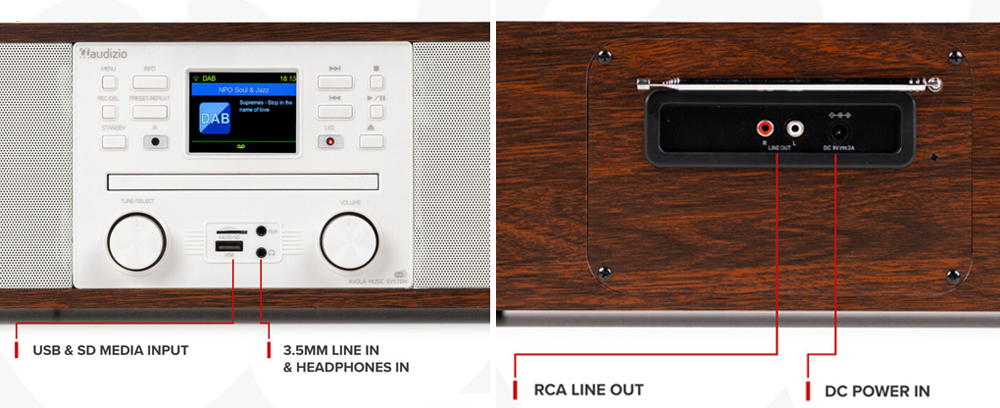 Παίξτε όλα τα είδη μουσικής με το ραδιόφωνο Avola all-in-one! Internet ραδιόφωνο με το οποίο μπορείτε να λαμβάνετε τους πιο καθαρούς ραδιοφωνικούς σταθμούς από όλον τον κόσμο. Λειτουργεί μέσω δικτύου WiFi. Επιπλέον, μπορείτε να χρησιμοποιήσετε το Avola ως ψηφιακό ραδιόφωνο DAB+, αλλά και ώς παραδοσιακό ραδιόφωνο FM. Αν έχετε βαρεθεί τους ραδιοφωνικούς σταθμούς, απλώς μεταδώστε τα αγαπημένα σας τραγούδια μέσω Bluetooth. Για τους λάτρεις των δίσκων CD, μπορείτε να παίξετε και να ακούσετε τα παλιά σας και αγαπημένα σας CD. Με το ραδιόφωνο Avola all-in-one μπορείτε πραγματικά να κινηθείτε προς όλες τις κατευθύνσεις !