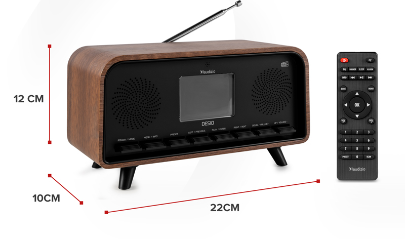 Η κλασική γοητεία συναντά τον ψηφιακό ήχο. Το Audizio Desio είναι κάτι περισσότερο από ένα απλό ραδιόφωνο είναι ένα κομψό αξεσουάρ που αναβαθμίζει την αισθητική του χώρου σας, προσφέροντας παράλληλα κορυφαία ποιότητα ήχου. Με φινίρισμα από φυσικό σκουρόχρωμο ξύλο και vintage σχεδίαση, το Desio φέρνει τη νοσταλγία του παρελθόντος στο σήμερα, ενσωματώνοντας όλες τις σύγχρονες δυνατότητες αναπαραγωγής.