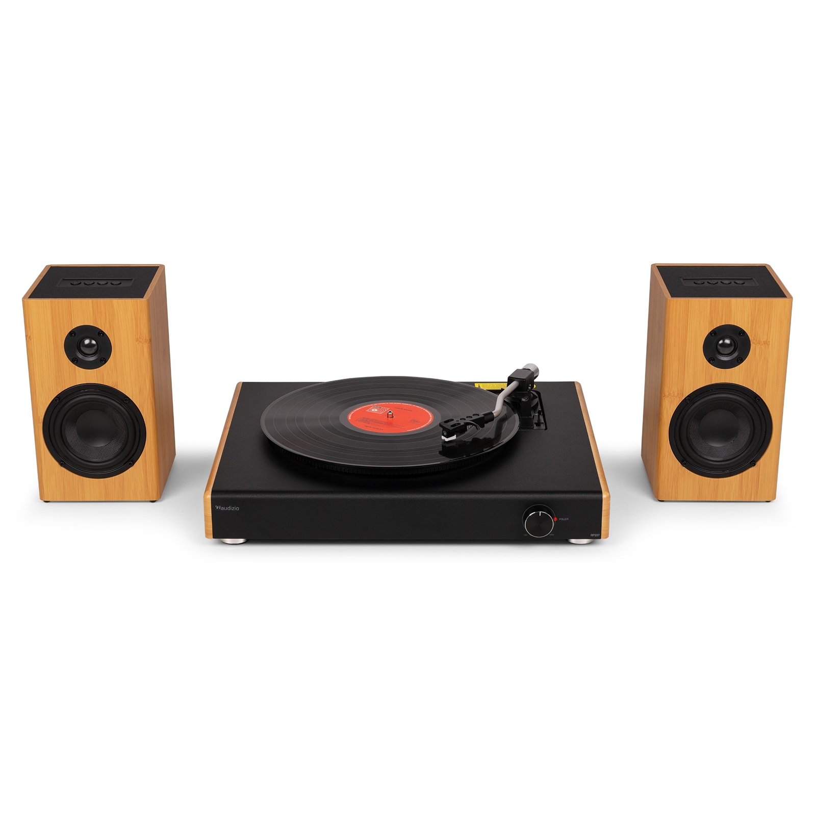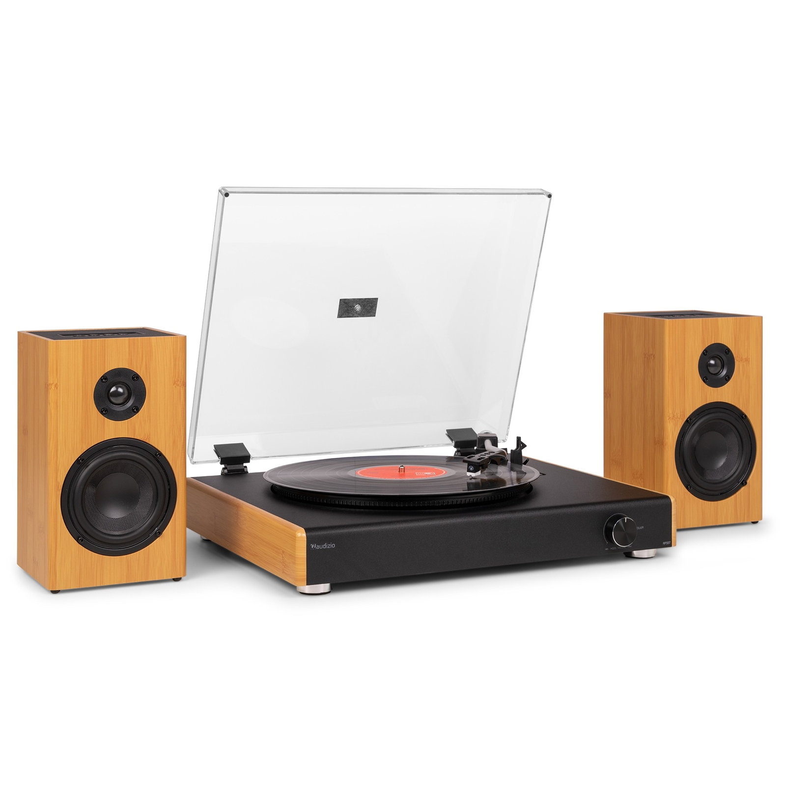 Τα ισχυρά στερεοφωνικά ηχεία 2 δρόμων / full range παρέχουν αρκετή ισχύ (2x 50 Watt) για να δώσουν στο σαλόνι σας την επιθυμητή ένταση. Χωρίς καλώδια μεταξύ ηχείων και πικάπ, ασύρματα ακούστε μουσική! Τα ηχεία μπορούν να λειτουργήσουν και με την ενσωματωμένη τους μπαταρία έως και 80 ώρες συνεχούς λειτουργίας. Το πικάπ σταματά αυτόματα όταν τελειώσει ο δίσκος (Auto lift και Auto return) και η βελόνα επιστρέφει στην αρχική της θέση. Με τρεις ταχύτητες (33 1/3, 45 και 78 σ.α.λ.), το πικάπ παίζει οποιαδήποτε μορφή δίσκου. Επιπλέον, θα παραμείνει σε άριστη κατάσταση για μεγαλύτερο χρονικό διάστημα χάρη στο αφαιρούμενο κάπακι προστασίας που το προστατεύει από τη σκόνη και άλλα επιβλαβή υλικά.