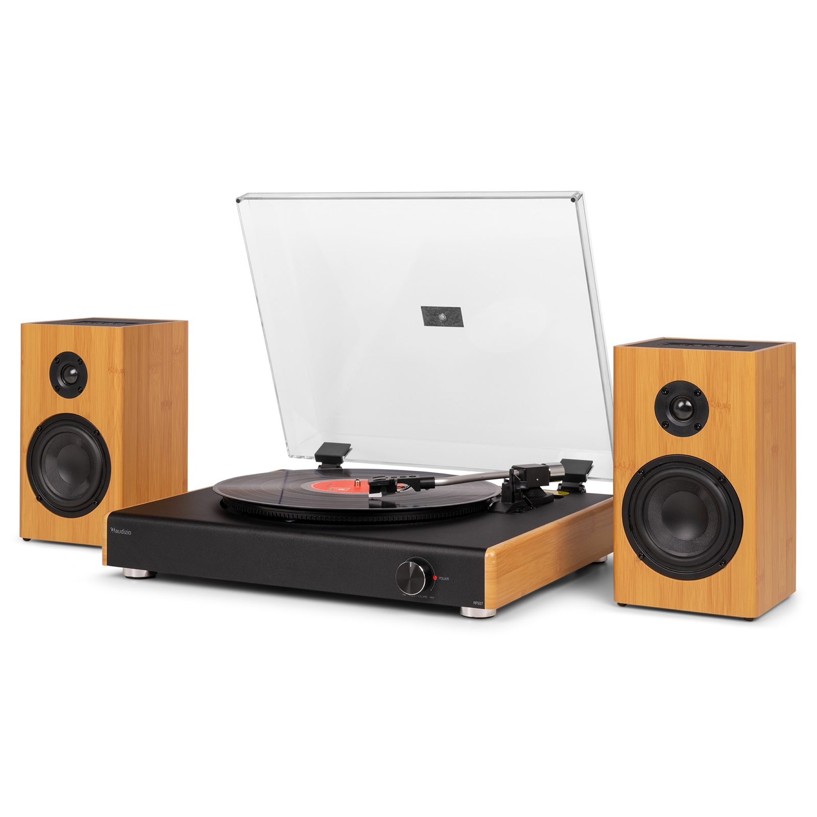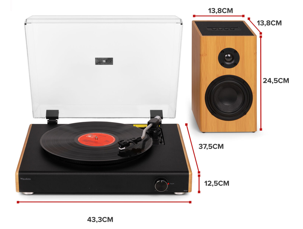 Μπορείτε να αναπαράγετε όλες τις μορφές δίσκων. Είτε θέλετε να αναπαράγετε τους μεγάλους δίσκους σας 12", το βινύλιο 10" ή τα μικρότερα singles 8", όλα είναι δυνατά! Χάρη στις τρεις διαφορετικές ταχύτητες (33 1/3, 45 και 78 στροφές/λεπτό), αυτό γίνεται πραγματικότητα. Το πικάπ διαθέτει ηχεία που λειτουργούν ασύρματα και παρέχουν ήχο πλήρους φάσματος με ισχύ εξόδου 50W ανά ηχείο. Μπορείτε επίσης να χρησιμοποιήσετε το πικάπ LP ως πικάπ Bluetooth. Με αυτήν τη λειτουργία, μεταδίδετε την ψηφιακή σας μουσική στο πικάπ και χρησιμοποιείτε τα ηχεία για τις δικές σας λίστες αναπαραγωγής
