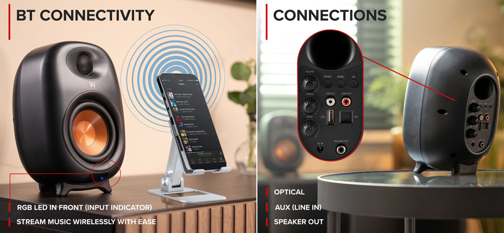 Ηχεία Audizio RS80 που έχουν σχεδιαστεί με προσοχή στη λεπτομέρεια. Ο μοντέρνος και κομψός σκούρος γκρι σχεδιασμός τους τα καθιστά μια πολύτιμη προσθήκη σε κάθε εσωτερικό χώρο. Ανακαλύψτε τον ήχο όπως ακριβώς πρέπει να ακούγεται με τα σετ ηχείων Active Bookshelf της σειράς Audizio RS. Σχεδιασμένα για καθαρό και λεπτομερή ήχο, με ισχυρή ισχύς εξόδου 160 Watt και ευρύ φάσμα συχνοτήτων από 40Hz έως 20kHz, ιδανικά για τους λάτρεις της μουσικής, του κινηματογράφου και τους gamers. Εξοπλισμένα με συνδεσιμότητα Bluetooth, Optical και RCA εισόδους, συνδυάζονται άψογα με την τηλεόραση, τον υπολογιστή, το smartphone ή το πικάπ σας. Με ενσωματωμένο ενισχυτή και μοντέρνο, συμπαγή σχεδιασμό, τα ηχεία της σειράς RS συνδυάζουν αβίαστα την απόδοση και το στυλ για να ταιριάζουν σε κάθε χώρο.