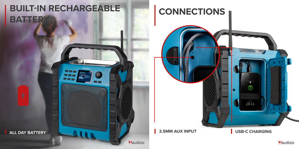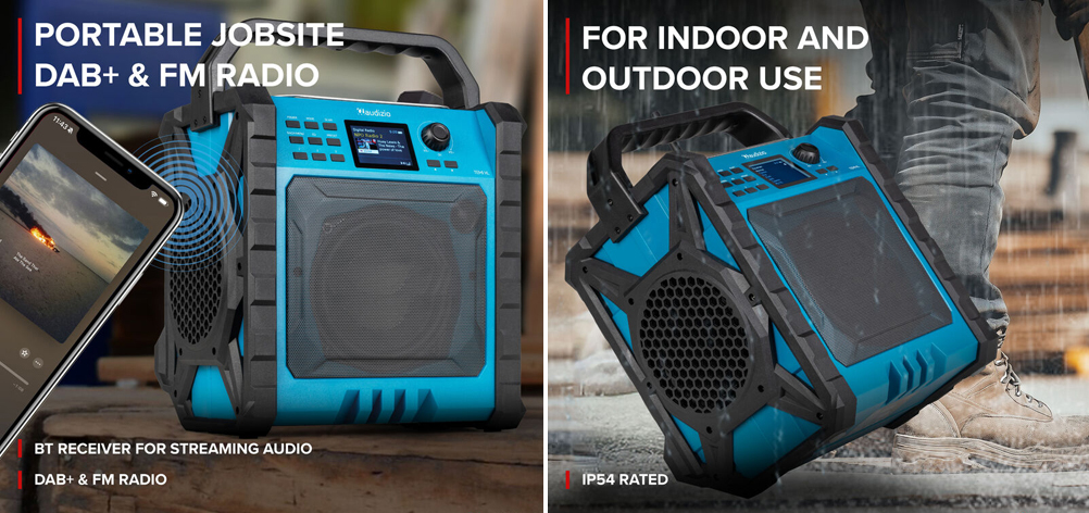 Είναι ανθεκτικό στη σκόνη και στα πιτσιλίσματα χάρη στην πιστοποίηση IP54. Ιδανικό για χρήση σε εργοτάξια, σε σκονισμένα εργαστήρια ή ακόμα και σε εξωτερικούς χώρους (στον κήπο) με βροχερό καιρό. Ο στιβαρός σχεδιασμός και το περίβλημα καθιστούν το Audizio TEMI-XL Jobsite κορυφαία επιλογή για όποιον θέλει μουσική ενώ εργάζεται, είτε είναι επαγγελματίας, είτε DIY ερασιτέχνης.