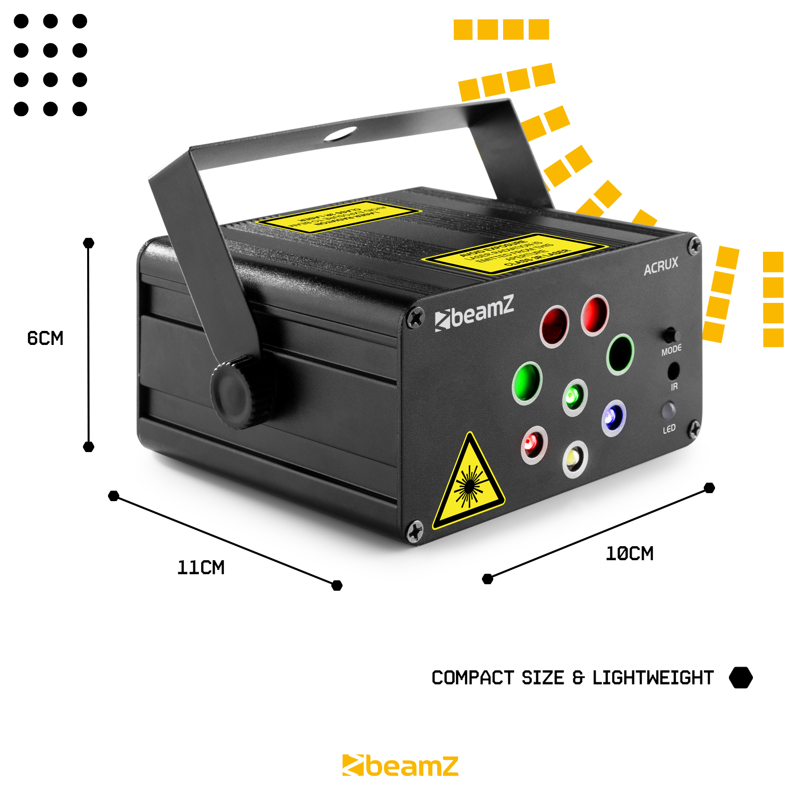 Acrux disco με 4x Laser ισχύος 300mW με Gobos με Κόκκινες και Πράσινες δέσμες, αλλά και φωτεινό RGBW Led φωτιστικό. Με το laser ACRUX της Beamz μπορείτε πλέον να ξεκινήσετε το πάρτι στη στιγμή και να γεμίσετε το χώρο με αντυπωσιακές, κινούμενες δέσμες και σχέδια