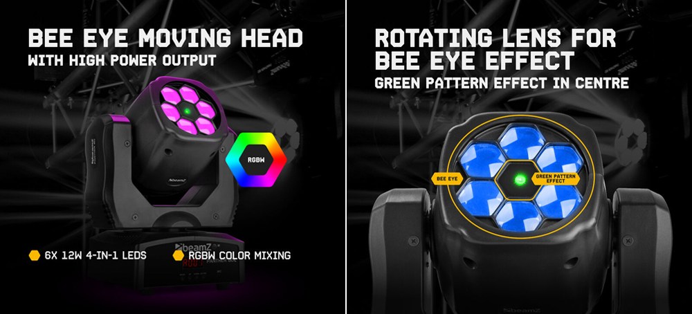 Με την εξαιρετική της ταχύτητα και τα προ-ρυθμισμένα προγράμματα light shows, σας εγγυάται εντυπωσιακά effects με εκπληκτικά χρώματα (συνδυασμός των χρωμάτων κόκκινο, πράσινο, μπλε και λευκό). Αυτή η ανάμειξη χρωμάτων σάς επιτρέπει να δημιουργήσετε σχεδόν οποιοδήποτε χρώμα, είτε θέλετε ένα έντονο κίτρινο είτε ένα εκθαμβωτικό μοβ, με λειτουργία 0-100% Smooth Dimmer.