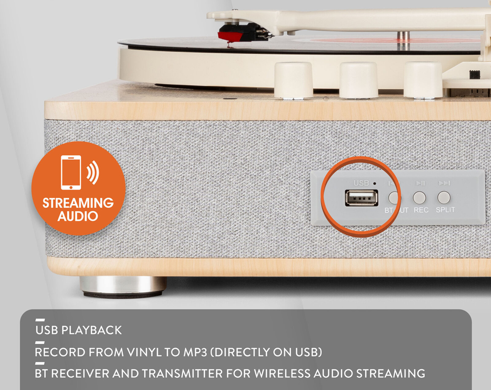 Πικάπ για τους πραγματικά φανατικούς retro λάτρεις του βινυλίου. Ένα πικάπ όπου εκτός από την εντυπωσιακή του εμφάνιση, θα κερδίσει τις αντυπώσεις και με το ηχητικό του αποτέλεσμα. Υψηλής ποιότητας κατασκευή καθώς το περίβλημα αποτελείται από μασίφ ξύλο και η κατασκευή του είναι χειροποίητη ενώ περιλαμβάνει και αντίβαρο για σωστό ''ζύγισμα'' του βραχίονα. Επιπλέον διαθέτει δέκτη Bluetooth, ενσωματωμένα ηχεία, Aux input, USB / Mp3 player και δυνατότητα εγγραφής (Recording) των βινυλίων σε ψηφιακή μορφή (MP3).
