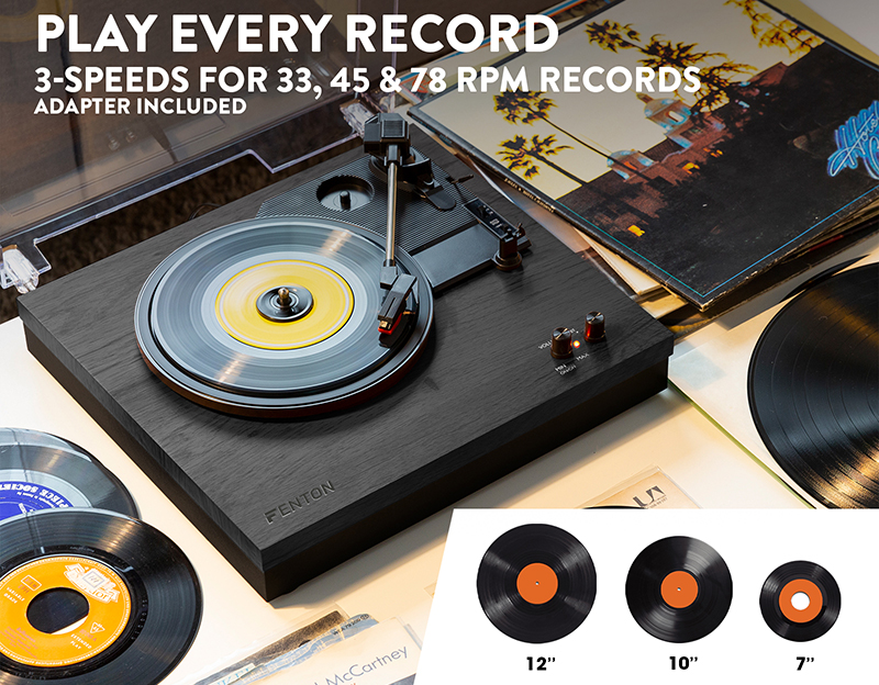 Κυριολεκτικά μπορεί να παίξει όλους τους τύπου βινυλίου (78 rpm γραμμοφώνου, 33 1/3 rpm LP και 45 rpm Single). Αυτό συνεπάγεται δίσκους 7", 10" και 12". Περιλαμβάνεται αντάπτορας για τους 78 rpm!
