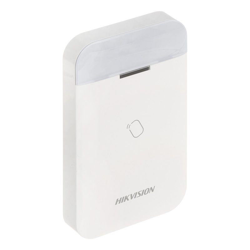 HIKVISION DS-PT1-WE(B) Αμφίδρομος ασύρματος Αναγνώστης καρτών Proximity (RFID Proximity Reader) για όπλιση / αφόπλιση πίνακα AX PRO. Τεχνολογία καρταναγνώστη: MIFARE 13.56 MHz. Πολύχρωμη φωτεινή ένδειξη κατάστασης πολλαπλών πληροφοριών και 4 για επιλεγόμενα partitions, πλήρη παραμετροποίηση από την εφαρμογή (app), διαθέτει ενσωματωμένο βομβητή, αποσπώμενη βάση για επίτοιχη τοποθέτηση καθώς και tamper προστασίας.