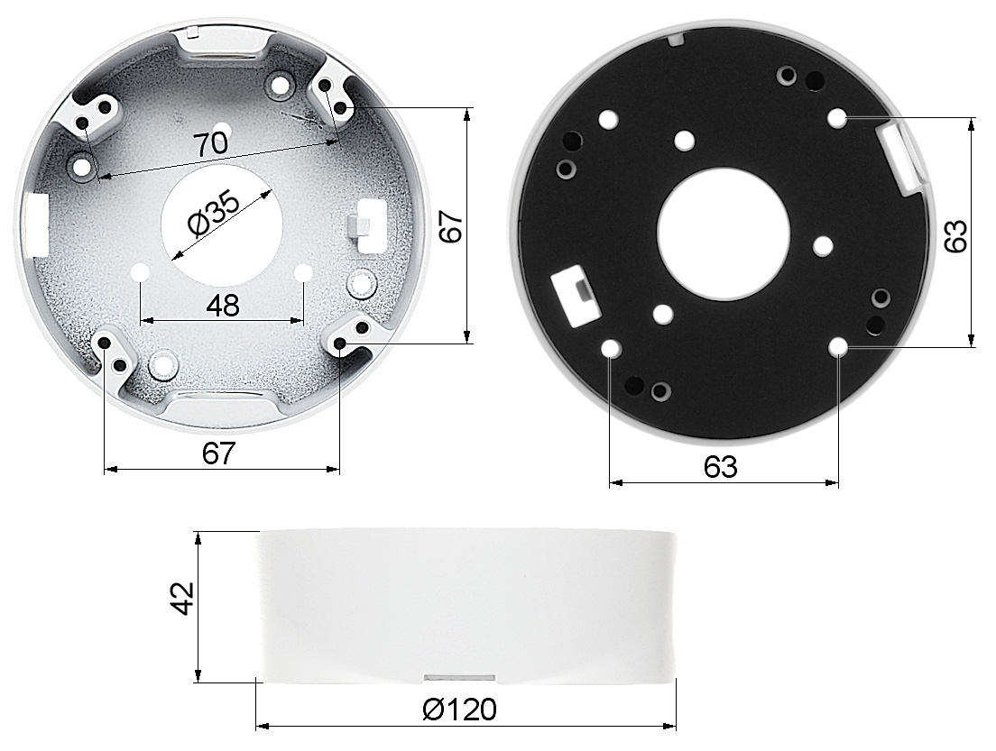 LTC BR-171 White Βάση κάμερας - Κουτί διακλάδωσης (junction box) Φ120mm, κατάλληλο για την κάμερα LTC LDVF-612F καθώς και για πολλές άλλες Κάμερεςς Dome Varifocal Φ120mm. Στερεώνεται σε κάθετο τοίχο ή στην οροφή και πάνω της βιδώνει η κάμερα, ώστε να υπάρχει επαρκής χώρος για τις συνδέσεις της κάμερας εντός της βάσης. Χρώμα: Λευκό