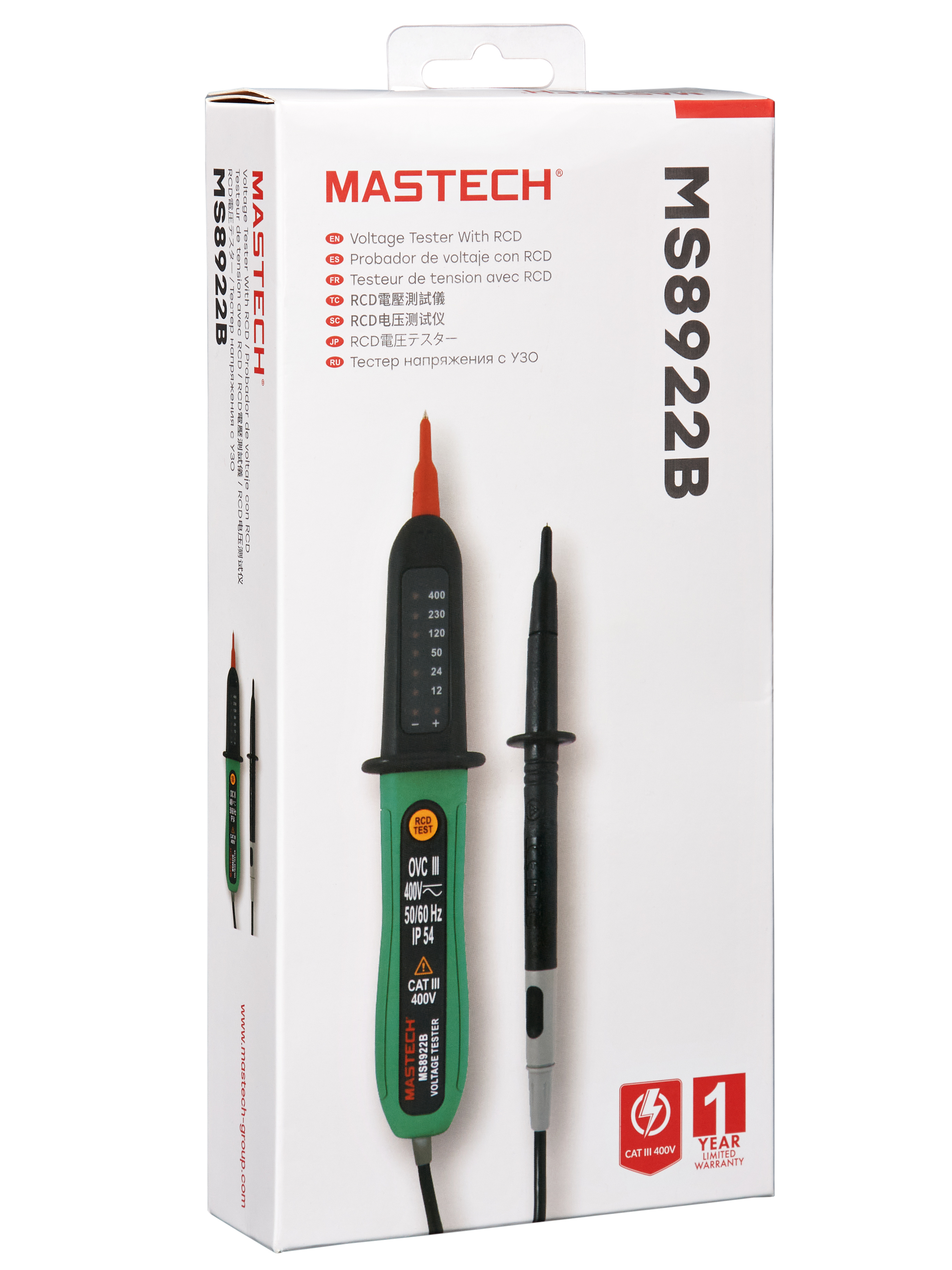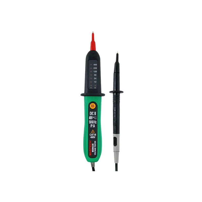 Το Mastech MS8922B είναι ένα επαγγελματικό δοκιμαστικό τάσης έως 400V με ενσωματωμένη λειτουργία ελέγχου διαφορικού ρεύματος (RCD), σχεδιασμένο για γρήγορο και ασφαλή έλεγχο ηλεκτρολογικών εγκαταστάσεων. Υποστηρίζει μετρήσεις AC/DC, επιτρέποντας τον έλεγχο τόσο εναλλασσόμενης όσο και συνεχούς τάσης, καλύπτοντας ευρύ φάσμα εφαρμογών σε πίνακες, πρίζες και κυκλώματα.