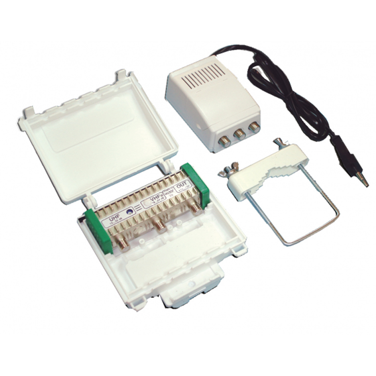 Ενισχυτής 12dB στα VHF και 30dB στα UHF (ρυθμιζόμενος). Συνοδεύεται από το τροφοδοτικό του. Η σύνδεση του ενισχυτή γίνεται με βύσματα F.
