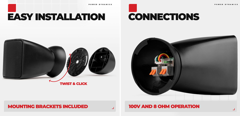 Η σειρά BSX της Power Dynamics, είναι ιδανικά για μεγαλύτερες εγκαταστάσεις όπου πολλαπλές μονάδες ηχείων πρέπει να συνδεθούν παράλληλα, χωρίς απώλεια στην ποιότητα και με χρήση ενισχυτών σύνδεσης 100V γραμμής. Η δυνατότητα επιλογής της λήψης λειτουργίας ( 3 Watt και 6 Watt) σας παρέχει ευελιξία στον σχεδιασμό και την υλοποίηση της εγκατάστασης.