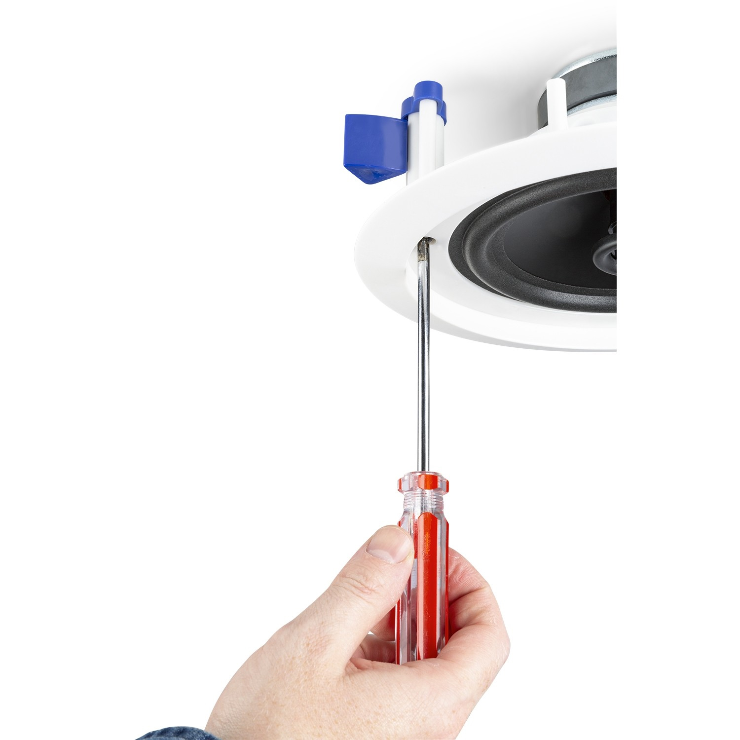 Έξυπνος τρόπος τοποθέτησης, με 3 πλαστικά άγκιστρα ρυθμιζόμενα, τα οποία καλύπτονται με την στεφάνη του ηχείου.