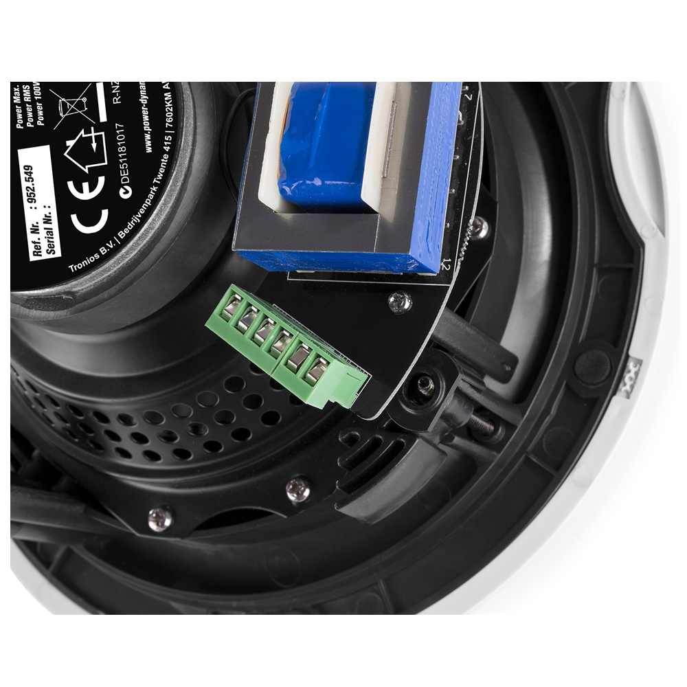 952.549 POWER DYNAMICS FCS8 Ηχείο οροφής (ABS) πλαστικό 8” Low profile, 2 δρόμων με μετασχηματιστή προσαρμογής 100V. Ηχείο που μπορεί να λειτουργήσει είτε σε ωμική γραμμή ισχύος 160 Watt Max / 40 Watt RMS, είτε σε 100V γραμμή εγκατάστασης ισχύος 40Watt / 100V. Ευαισθησία 90dB, απόκριση συχνότητας 50Hz- 20kHz. Διαστάσεις: 272Ø x 118mm. Διάμετρος οπής 246Ømm. Βάρος 1.1 kg. Χρώμα λευκό.