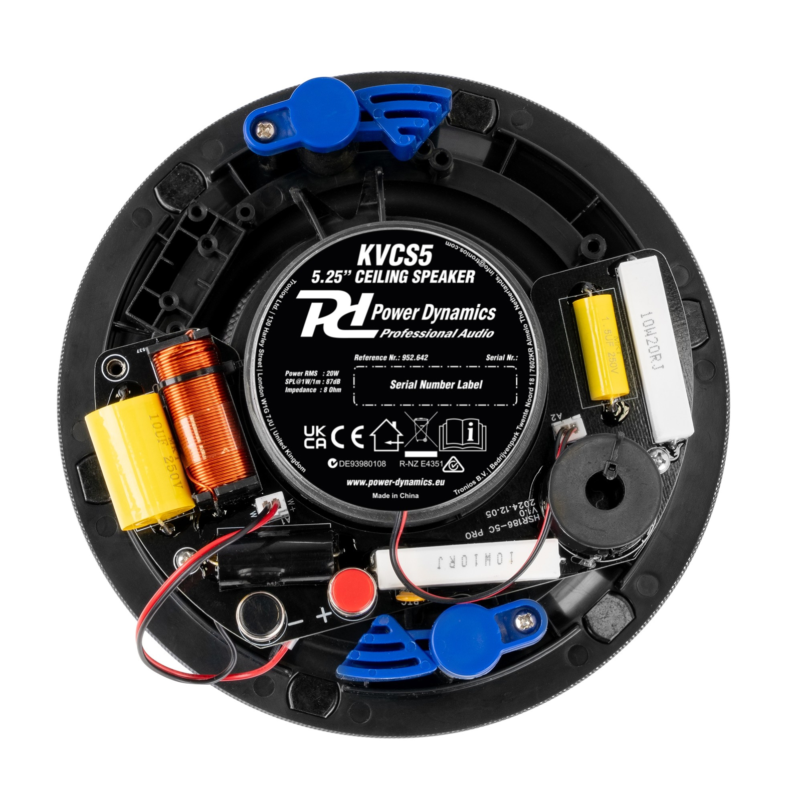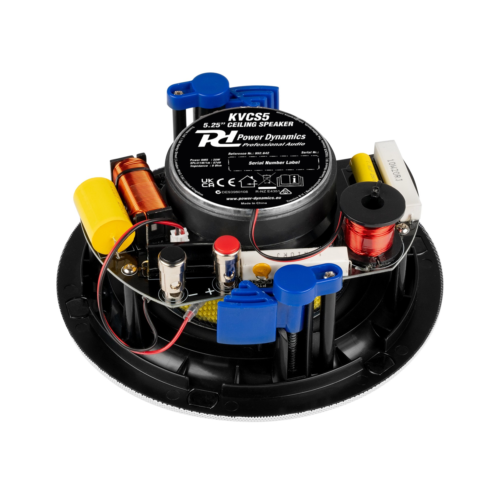 Το KVCS5 952.642 είναι ένα ηχείο οροφής σε Λευκό χρώμα (ABS) πλαστικό 5.25” Low profile, quick fit για γρήγορη και εύκολη τοποθέτηση, με μεταλλική σήτα με μαγνήτες. Σχεδίαση 2 δρόμων με crossover 2 δρόμων (Hi - Low) το οποίο υποστηρίζει ωμική σύνδεση (8 Ohm), ισχύος 20 Watt RMS .