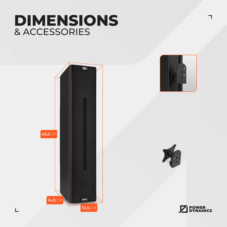 Παθητική και Ποιοτική ηχοστήλη της Power Dynamics για χρήση σε απαιτητικές εφαρμογές. Πολύ κομψό και συμπαγές ηχείο, σε ανθεκτική καμπίνα από ABS, παράγει εξαιρετική ποιότητα ήχου τόσο για εφαρμογές μουσικής όσο και για εφαρμογές ομιλίας. Κατάλληλο για χρήση σε εκκλησίες, αίθουσες συσκέψεων, χώρους φιλοξενίας, ξενοδοχεία, θέατρα, κέντρα εκδηλώσεων και πολλά άλλα. Ιδανική λύση για όποιον αναζητά ένα ευέλικτο και ισχυρό παθητικό ηχείο στήλης, με πραγματική ισχύ εξόδου 50 Watt RMS σε σύνδεση γραμμής 100V.