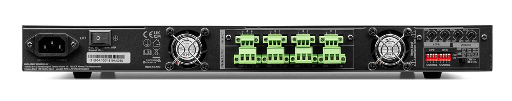 - 4x Separate channel speaker outputs 8Ω/100V