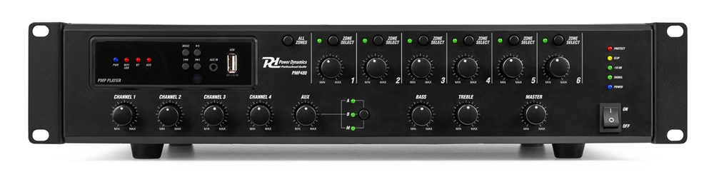 Power Dynamics PMP480 Commercial Mixer Amplifier 480W – Επαγγελματικός Ενισχυτής 100V 6 Ζωνών με Σύστημα Επιλεκτικών Αναγγελιών & WiFi Internet Radio