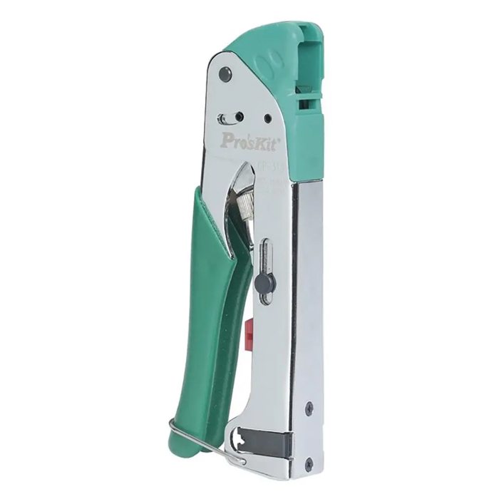 Πρέσα συμπίεσης Μεταλλική για connectors τύπου F, BNC, RCA της ProsKit, CP-313. Αποδοτική λύση για πρεσάρισμα του βύσματος με τέλεια εφαρμογή σε μηδενικό χρόνο. Κατάλληλη για καλώδια RG58, RG59 και RG6. Με ρυθμιζόμενη απόσταση συμπίεσης και επαναφορά. Μήκος πρέσας: 152mm.