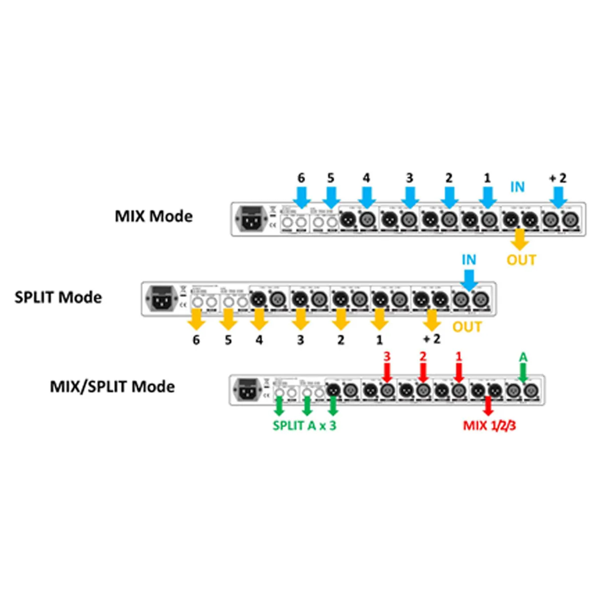 Επαγγελματικός διανεμητής (splitter) με 2 εισόδους και 8 εξόδους και μίκτης με 8 εισόδους και 2 εξόδους σε μία συσκευή. Όλοι οι είσοδοι και έξοδοι είναι balanced ενώ 6 είσοδοι και 6 έξοδοι είναι XLR με 2 εισόδους και 2 εξόδους ακόμα να χρησιμοποιούν jack 6.3mm