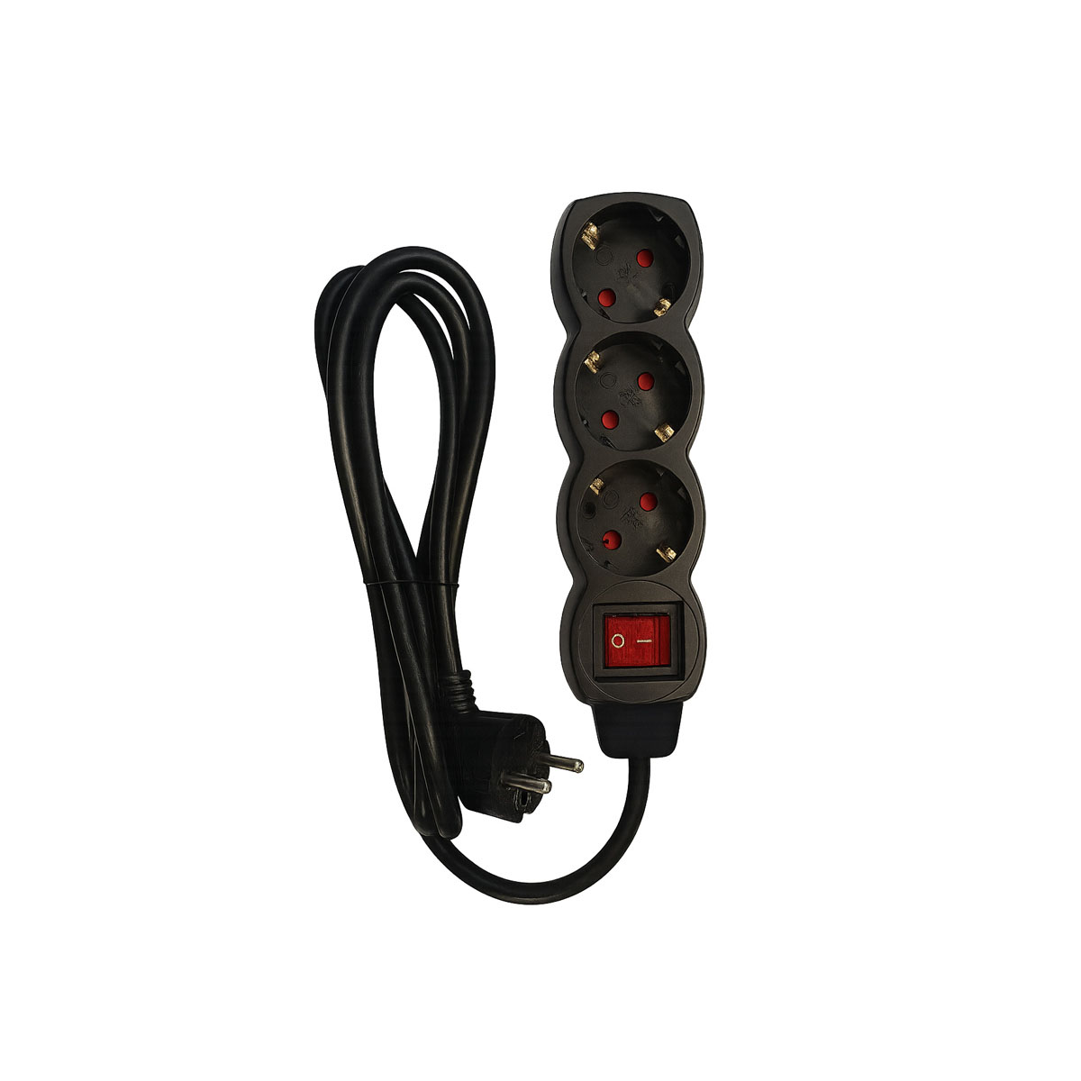 Πολύπριζο 3 θέσεων με καλώδιο H05VV-F 3Gx1.5mm², μηκος 1.5m και Power max 3680W 16A/250V σε μαύρο Χρώμα.