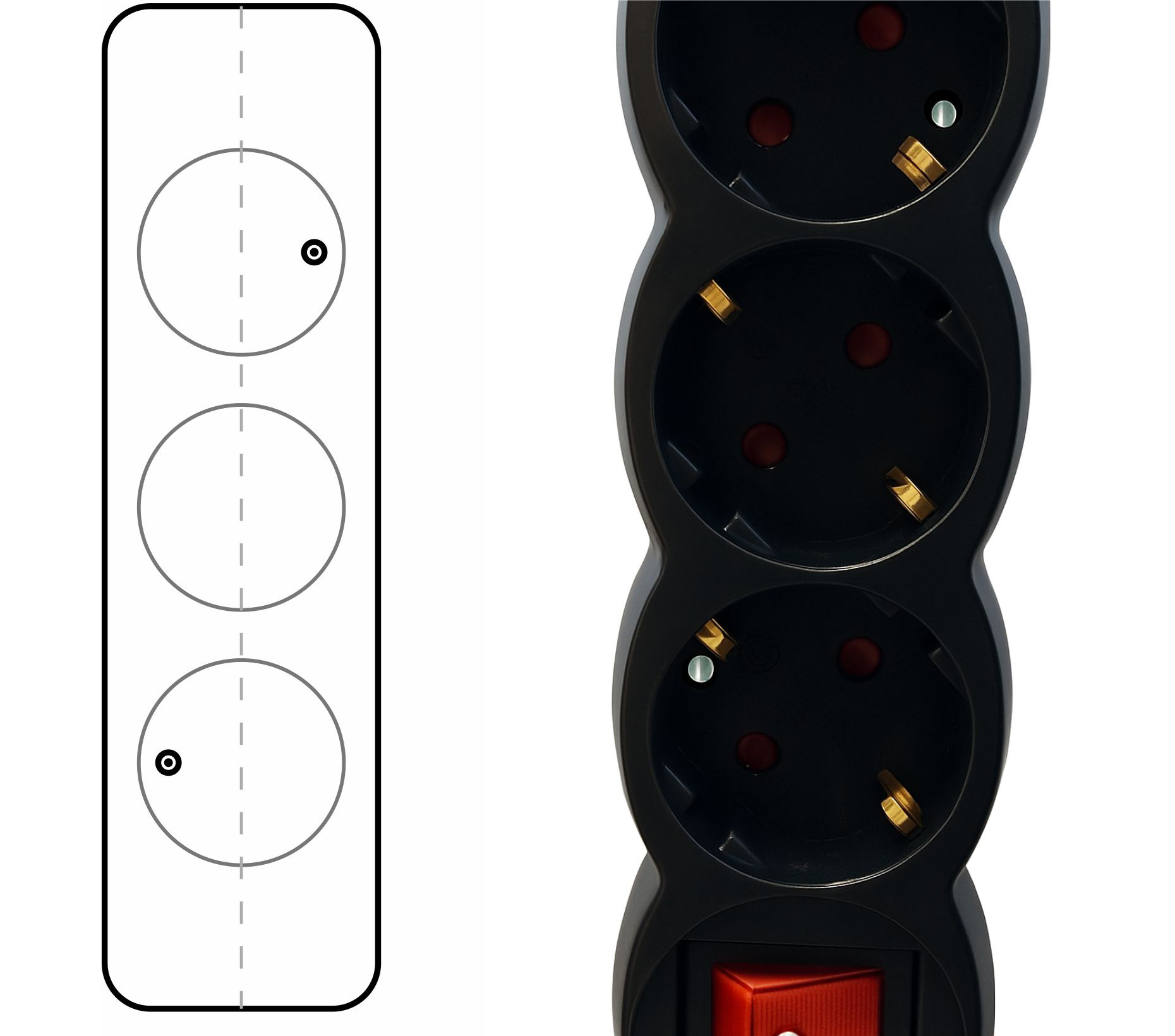 Το πολύπριζο διαθέτει 3 υποδοχές τύπου σούκο για να συνδέσεις έως και 3 ηλεκτρικές συσκευές ταυτόχρονα. Οι υποδοχές σούκο είναι εξοπλισμένες με ασφάλεια για τα παιδιά, ενώ διαθέτει και διακόπτη ON/OFF για να απενεργοποιείτε το πολύπριζο όταν δεν το χρησιμοποιείτε. Τέλος διαθέτει τρύπες για να βιδωθεί σε τοίχο.