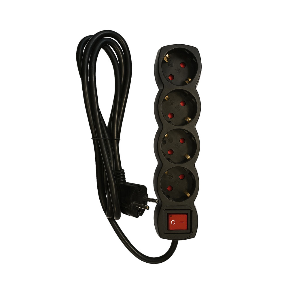 Πολύπριζο 4 θέσεων με καλώδιο H05VV-F 3Gx1.5mm² , μηκος 1.5m και Power max 3680W 16A/250V σε μαύρο Χρώμα.