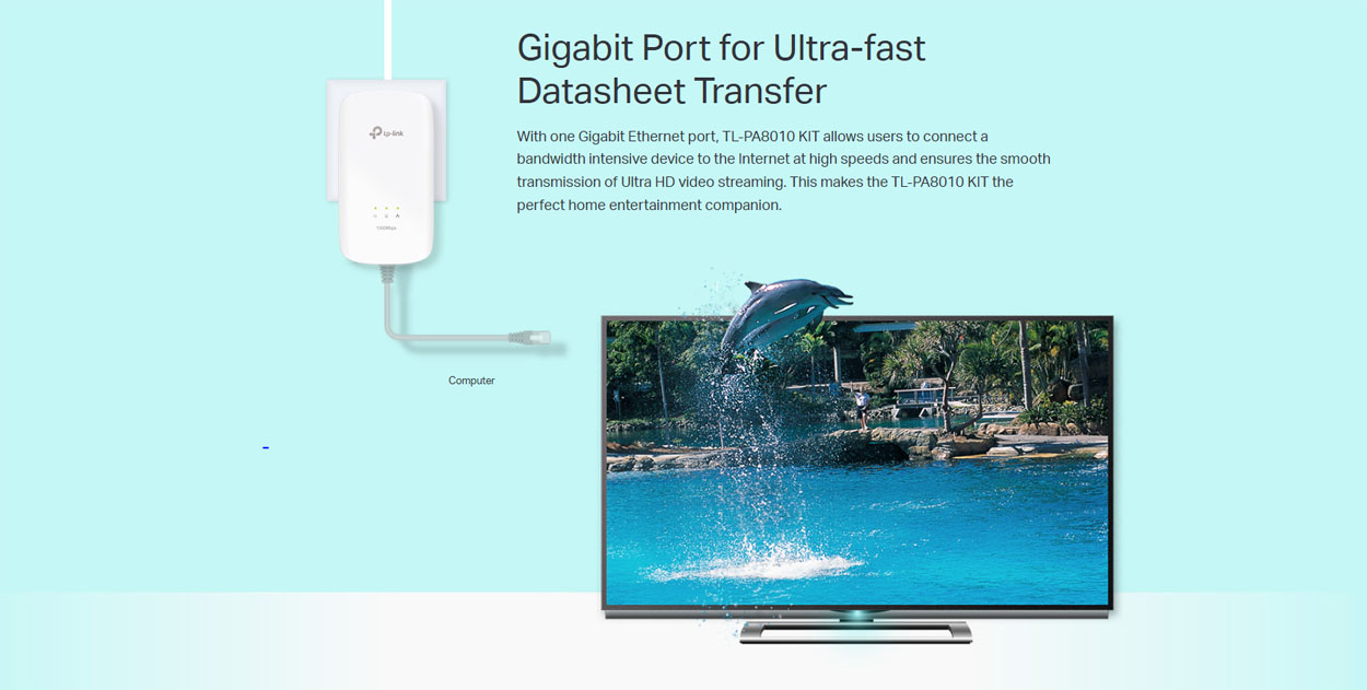 Η ενσωματωμένη θύρα Gigabit Ethernet παρέχει ασφαλή και γρήγορη ενσύρματη σύνδεση για επιτραπέζιους υπολογιστές, έξυπνες τηλεοράσεις, κονσόλες παιχνιδιών και άλλες συσκευές. Η εγκατάσταση είναι εξαιρετικά απλή: σύνδεση και λειτουργία, χωρίς καμία ανάγκη για ρυθμίσεις.
