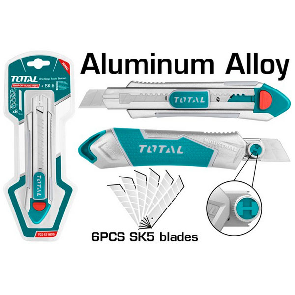 Κοπίδι Αλουμίνιου 178mm. Διαθέτει έξι λεπίδα 18mm x 100mm και πάχους 0.8mm. Μήκος κοπιδιού με κλειστή λεπίδα 178 mm