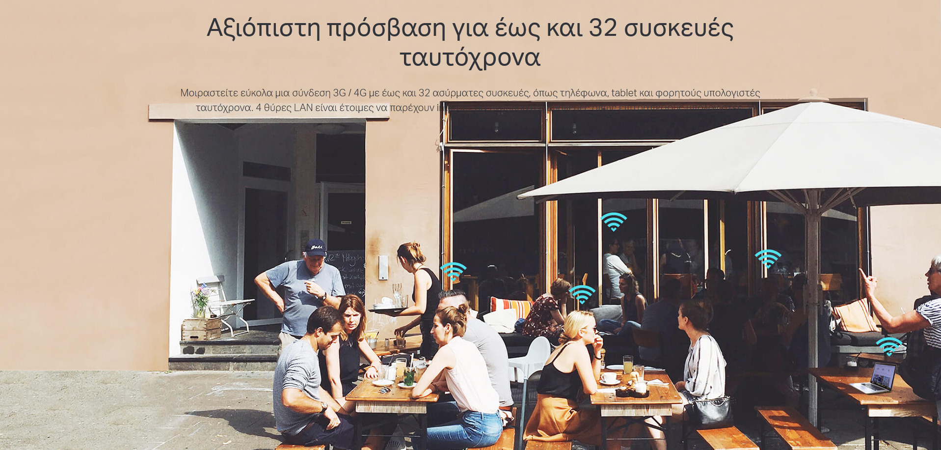 - Λειτουργία Wi-Fi Router: Διαθέτει θύρα WAN/LAN, προσφέροντας μια εναλλακτική επιλογή σύνδεσης μέσω καλωδίου Ethernet αν η σύνδεση 4G δεν είναι διαθέσιμη.