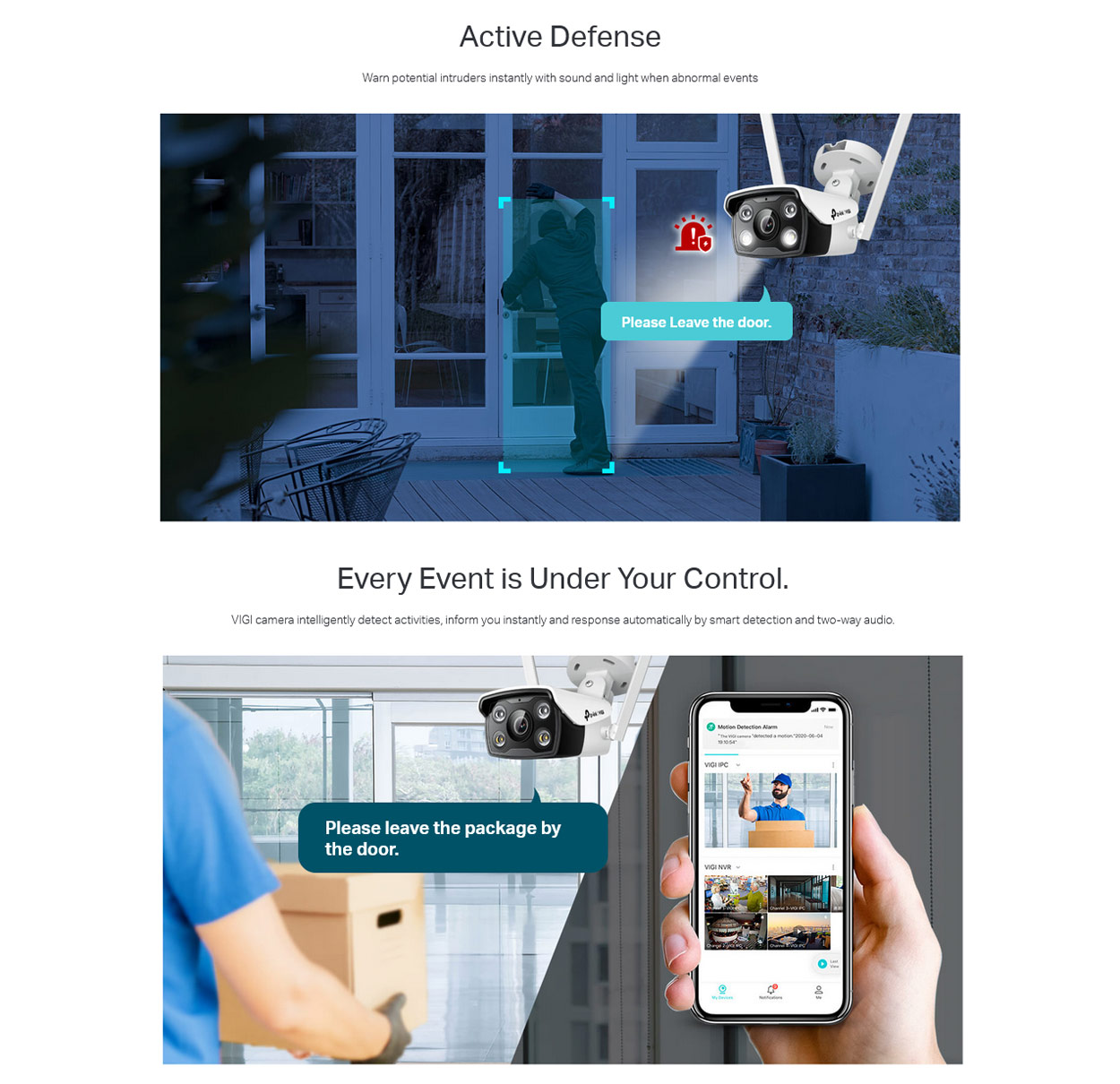 Δείτε έγχρωμα ακόμα και σε συνθήκες απόλυτου σκοταδιού. Η TP-Link VIGI C340-W διαθέτει φακό μεγάλου διαφράγματος, αισθητήρα υψηλής ευαισθησίας και συμπληρωματικά φώτα ορατού φωτός για καταγραφή ακόμα και τη νύχτα, με υψηλή λεπτομέρεια εικόνας.