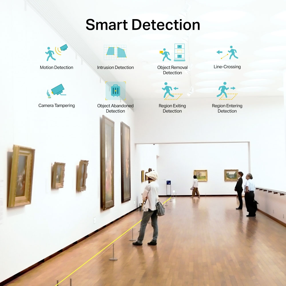 Human & Vehicle Classification, Area Intrusion Detection, Line-Crossing Detection, People Detection, Vehicle Detection, Region Entering Detection, Region Exiting Detection, Object Abandoned Detection, Object Removal Detection Corridor Mode: Λειτουργία για στενούς διαδρόμους, κρατώντας την αναλογία 9:16