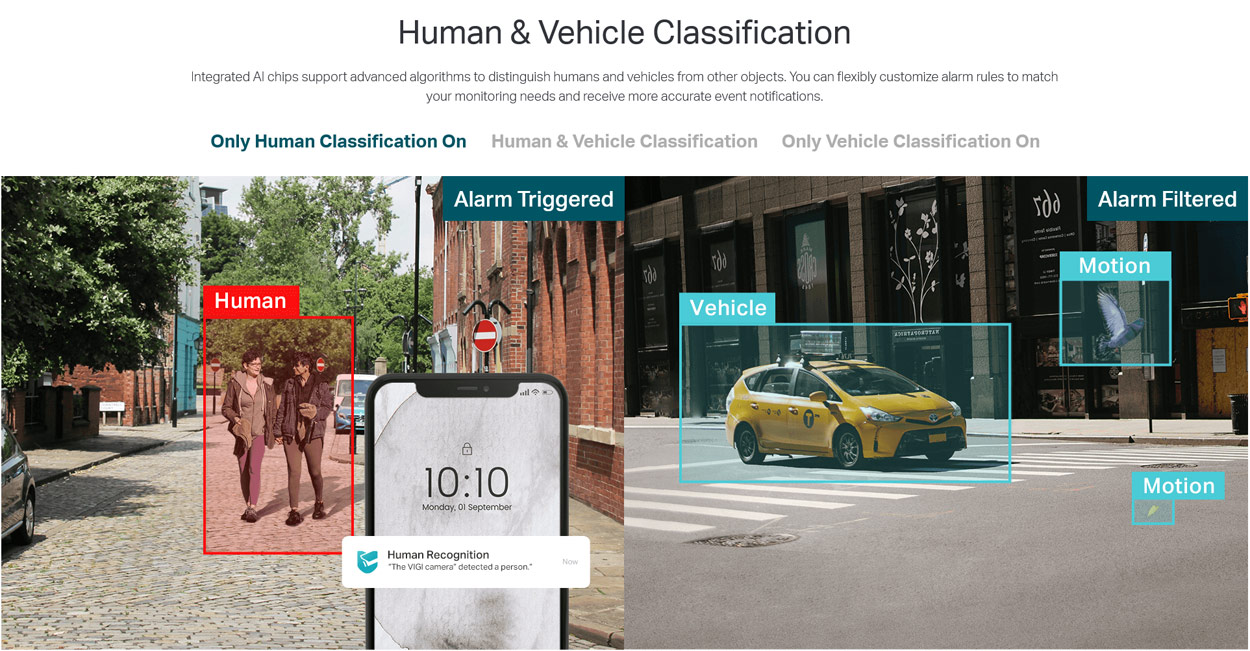 Τεχνολογία που ξεχωρίζει τον άνθρωπο/όχημα από οτιδήποτε άλλο στο πλάνο της κάμερας, μειώνοντας δραστικά τις ειδοποιήσεις που αφορούν ανίχνευση κίνησης.