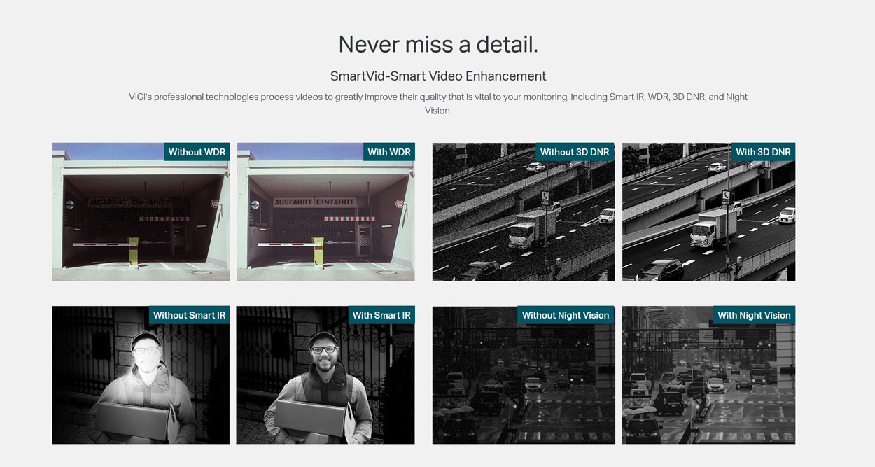Διαθέτει ευρυγώνιο φακό 2.8mm με οριζόντια γωνία λήψης 88.8° και τον απαραίτητο υπέρυθρο φωτισμό για υπέρυθρη νυχτερινή παρακολούθηση (IR Night Vision) σε αποστάσεις ως 30 μέτρα. Προσφέρει έως και 3 φορές καλύτερη εικόνα σε σχέση με μία κάμερα ανάλυσης 1080p και είναι κατάλληλη για την παρακολούθηση επαγγελματικών αλλά και οικιακών χώρων, προσφέροντας υψηλή ανάλυση εικόνας, με καλή αποτύπωση λεπτομερειών σε πρόσωπα αλλά και αντικείμενα.