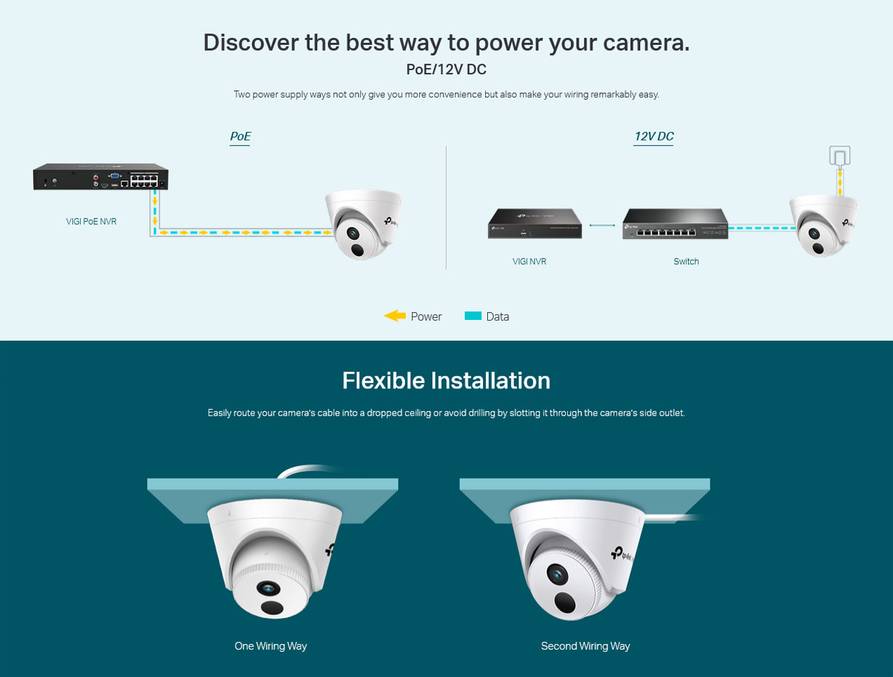 Παρέχει τη δυνατότητα τροφοδοσίας της η μέσω του ίδιου ethernet καλωδίου που χρησιμοποιείται για τη σύνδεση στο δίκτυο, η με τροφοδοτικο 12V DC. Με αυτό τον τρόπο διευκολύνει σημαντικά στην εγκατάσταση της.