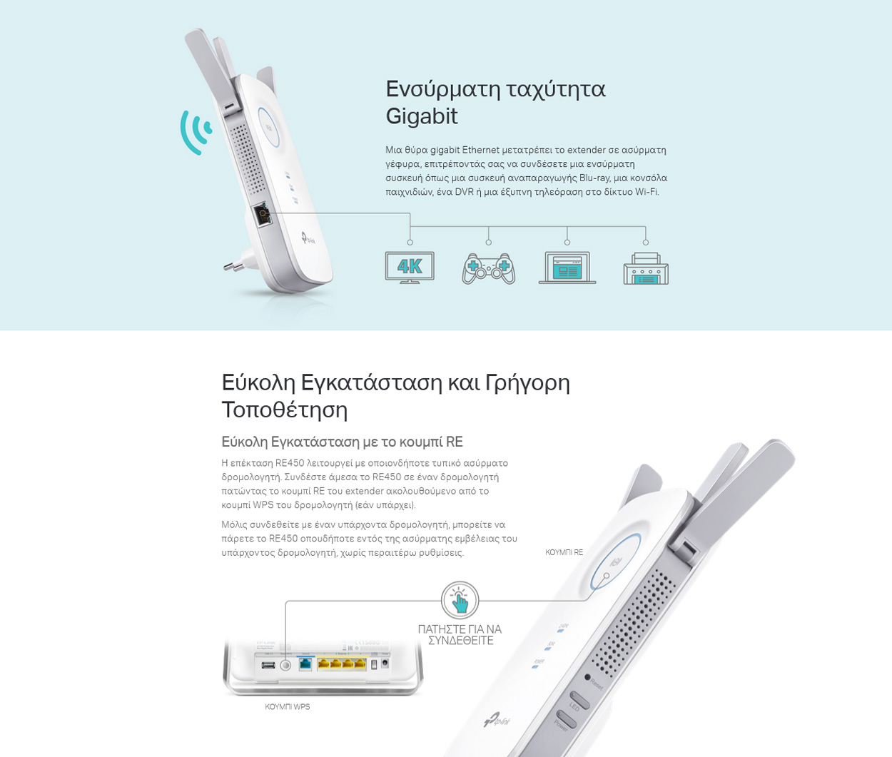 - Τρόποι Λειτουργίας (Working Modes): Range Extender (Ενισχυτής Σήματος) / Access Point (Σημείο Πρόσβασης).