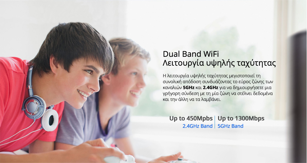 - Ρυθμός Σήματος (Signal Rate): 5GHz: έως και 1300Mbps, 2.4GHz: έως και 450Mbps.