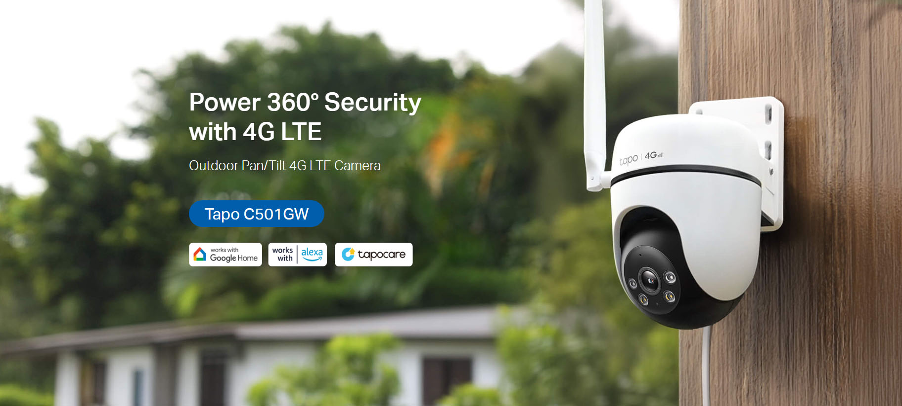 TP-Link Tapo C501GW (V1.0) Ρομποτική περιστρεφόμενη ασύρματη (4G) - Ενσύρματη (Ethernet) κάμερα εξωτερικού χώρου, σε λευκό χρώμα. Υποστηρίζει σύνδεση μέσω δικτύου κινητής τηλεφωνίας 4G και για το λόγο αυτό διαθέτει υποδοχή για κάρτα SIM (Nano SIM - Η κάρτα SIM δεν περιλαμβάνεται). Σημειώστε πως υποστηρίζει επίσης και ενσύρματη σύνδεση LAN μέσω θύρας Ethernet καθώς και δυνατότητα τροφοδοσίας μέσω PoE 802.3af/at.