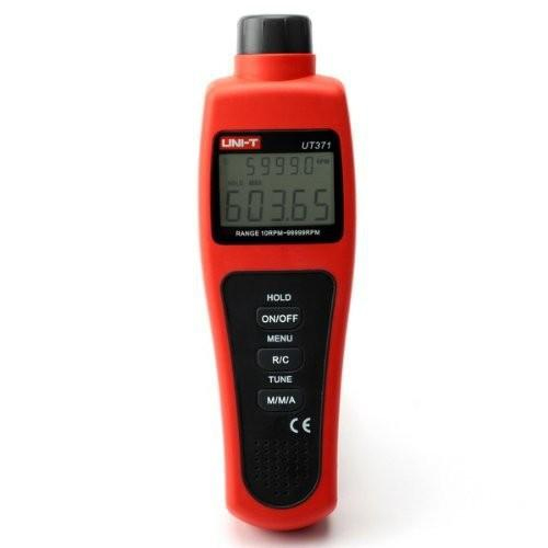 Ψηφιακό Ταχόμετρο Στροφόμετρο Laser (χωρίς επαφή) της UNI-T, UT371. Ικανό να καταγράψει το ρυθμό περιστροφής ενός περιστρεφόμενου αντικειμένου χωρίς επαφή με αυτό, αλλά από απόσταση 50mm έως 200mm (απαραίτητο ανακλαστικό σημείο). Μετράει από 10-99999 RPM, με ακρίβεια 0.04% +/- 2dgt ενώ εμφανίζει μετρήσεις ΜΙΝ /ΜΑΧ/AVG, διαθέτει λειτουργία Data Hold και αυτόματη απενεργοποίηση (επιλέξιμο) μετά από 15 λεπτά.