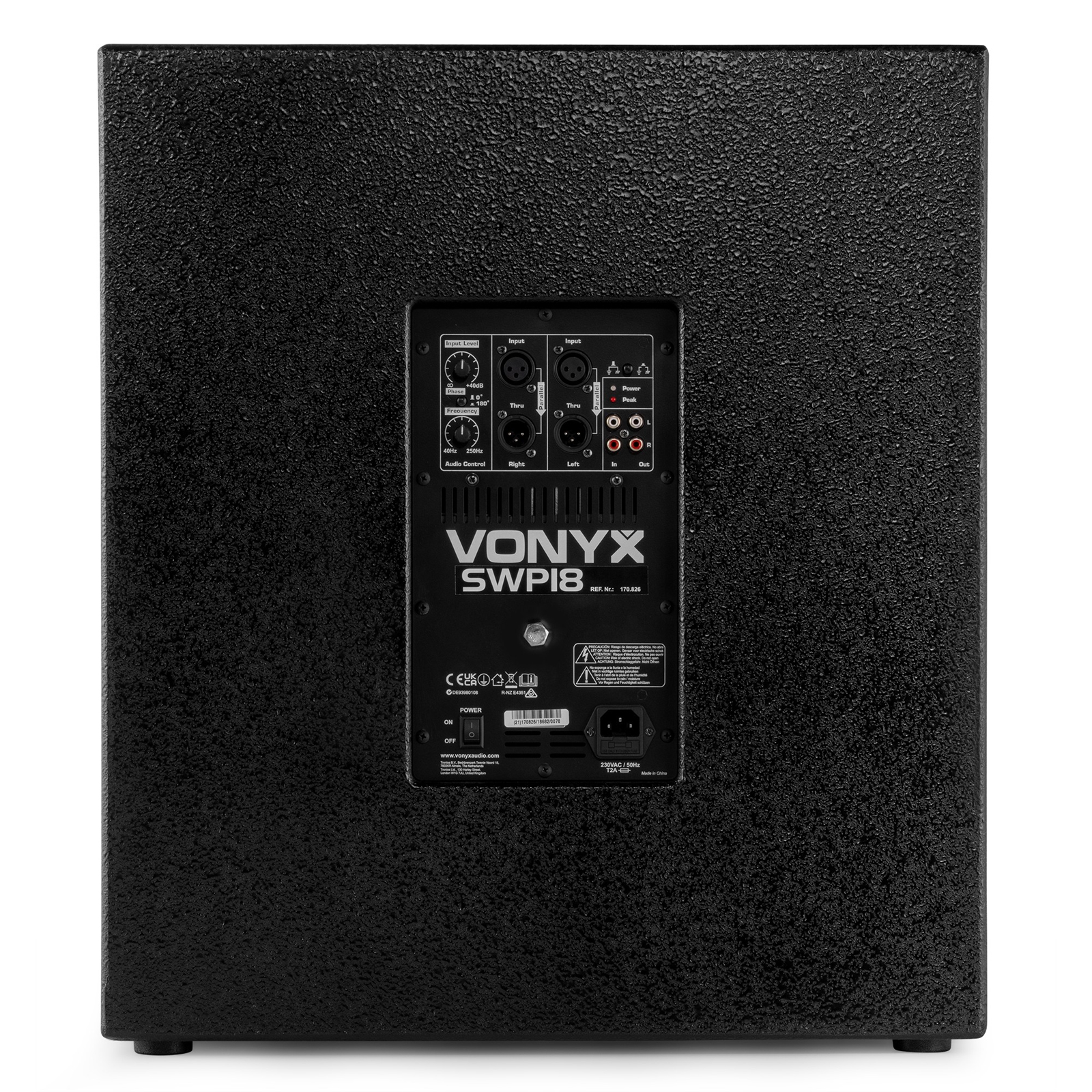 Κατάλληλο για χρήση σε επαγγελματικούς χώρους με δυνατές μουσικές. Διαστάσεις 435 x 550 x 615 mm. Βάρος 27Kg