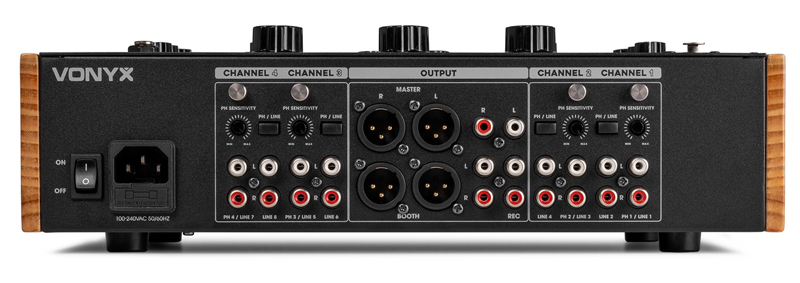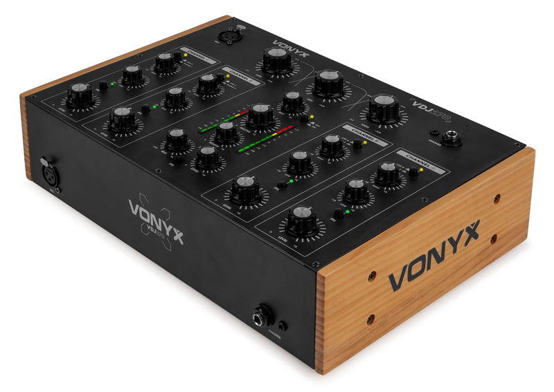 DJ μίκτης της Vonyx VDJ270 που επαναφέρει την οικεία αίσθηση των κλασικών ρυθμίσεων DJ. Αντί για μοντέρνα faders, εργάζεστε με περιστροφικά κουμπιά που εξασφαλίζουν μια ομαλή και φυσική εμπειρία μίξης. Ιδανικός για τους λάτρεις του βινυλίου και τα κλασικά σετ DJ, αλλά και για τον σύγχρονο DJ με ψηφιακά music players ή CD Players. Χάρη στα τέσσερα ξεχωριστά κανάλια, μπορείτε εύκολα να συνδέσετε έως και τέσσερα διαφορετικά πικάπ ή άλλες πηγές ήχου. Ο μαύρος σχεδιασμός με ξύλινα πλαϊνά δίνει στον αναλογικό μίκτη μια πιο Vintage νότα και εμφάνιση που ταιριάζει απόλυτα με βινύλιο και κλασικά DJ σετ.