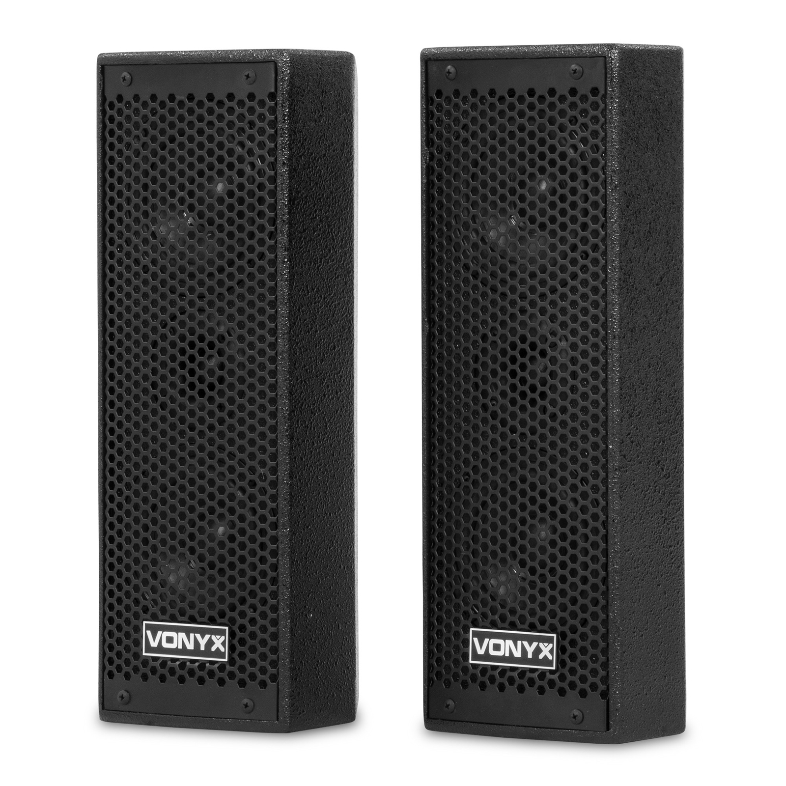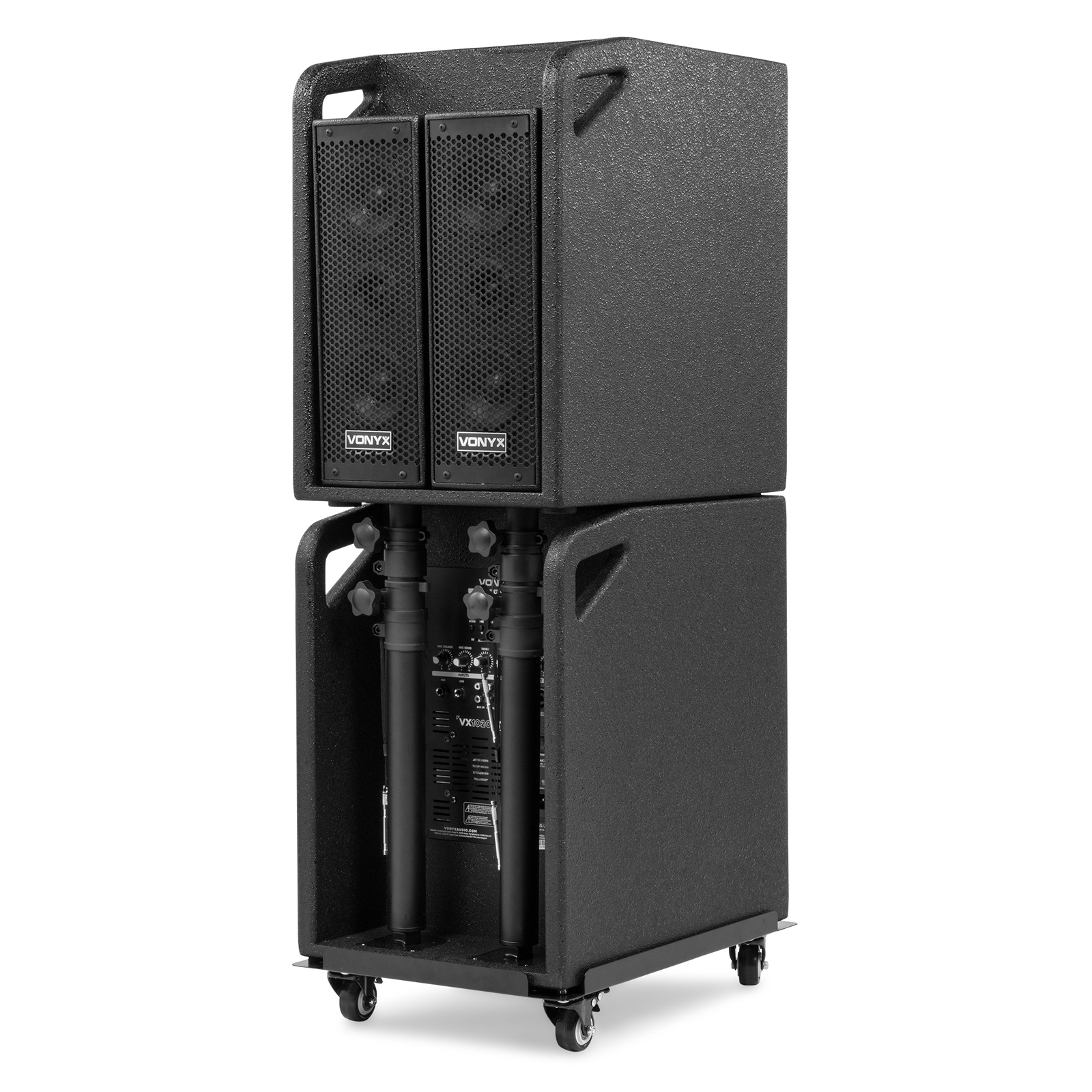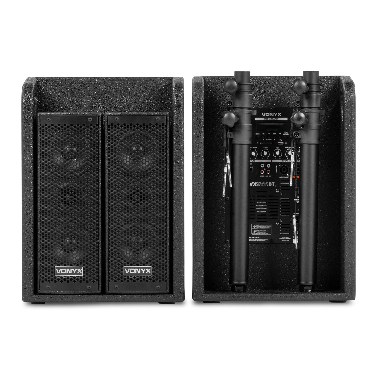 Αυτοενισχυόμενο Σετ με 2x Top Speaker παθητικά με ανθεκτική PRO καμπίνα και 2x Subwoofer 10" (1x παθητικό + 1x ενεργό) 170.204. Το σετ της Vonyx είναι πλήρες και περιλαμβάνει 2 βάσεις στήριξης των Top Speaker πάνω στα Subwoofers, καλώδια σύνδεσης των ηχείων, ενσύρματο μικρόφωνο και ασύρματο τηλεχειριστήριο. Σε όλα αυτά προστίθενται και οι λειτουργίες αναπαραγωγής MP3 τραγουδιών μέσω USB και κάρτας SD, όπως και ο δέκτης Bluetooth για streaming μουσικής ασύρματα από το Smartphone, Tablet, Laptop, κλπ. Πλήρες και compact σύστημα, plug and play, έτοιμο για χρήση. Ένα πολύ δυνατό ηχητικό πακέτο, ιδανικό για χρήση σε αυτούς που θέλουν εύκολα να μεταφέρουν το ηχητικό τους σύστημα άμεσα και ξεκούραστα. Εξαιρετική απόδοση και ποιότητα σε σχέση με τη τιμή του !