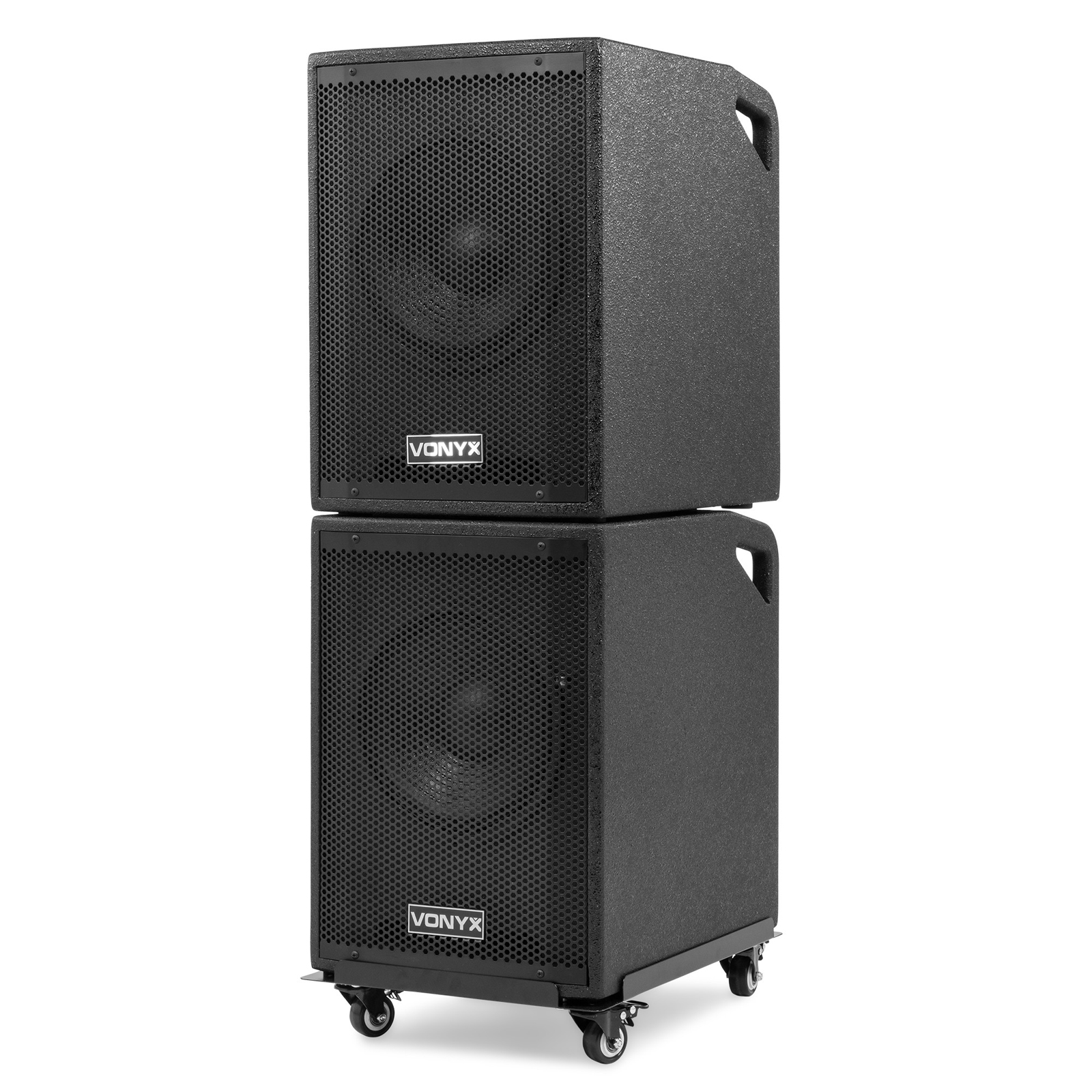 2 x Sub woofer ισχύος 415 Watt Power Max με Woofer 10" και ανθεκτική καμπίνα σειράς PRO. Το ένα Sub από τα δύο είναι αυτοενισχυόμενο και φέρει και τον ενισχυτή του συστήματος. Ο κάθε δορυφόρος (Top Speaker) συνδέεται με το αντίστοιχο Sub και το ενεργό Sub συνδέεται με το παθητικό Sub. Διαστάσεις κάθε sub 480 x 370 x 408mm.