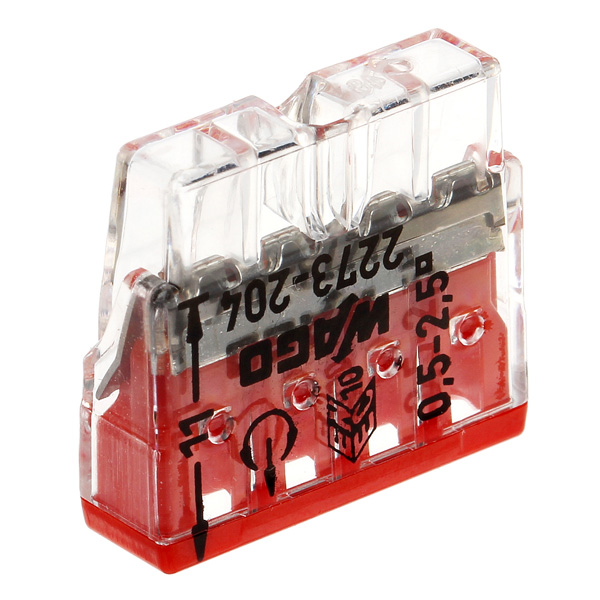 Wago 2273-204 Κλεμα Ταχυ-σύνδεσμος για την ένωση 4 μονόκλωνων αγωγών διαμέτρου 0,5~2,5mm. Τεχνολογία Compact Push Wire Connector. Διευκολύνει την σύνδεση των αγωγών σε πλείστες εφαρμογές και κυρίως εντός των κουτιών διακλάδωσης.
