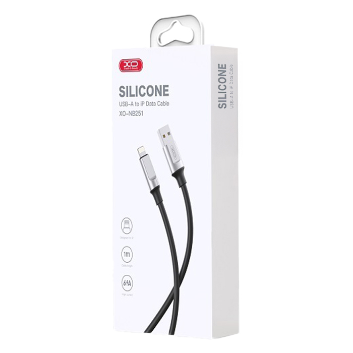 Καλώδιο σιλικόνης δεδομένων και ταχείας φόρτισης 6Α USB Lightning αρσ. σε USB A αρσ. 1m της XO-NB251. Κατάλληλο για φόρτιση και μεταφορά δεδομένων σε iPhone με θύρα lightning.