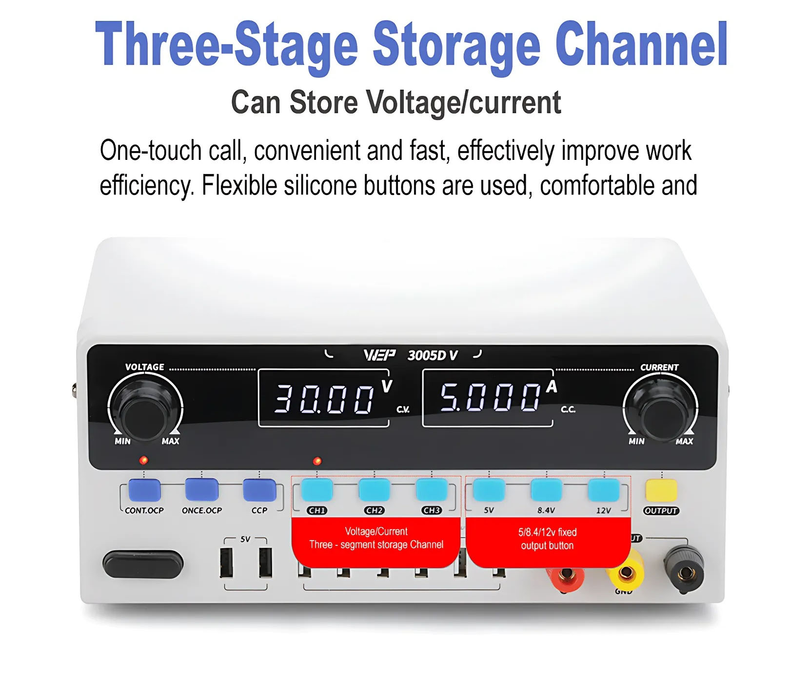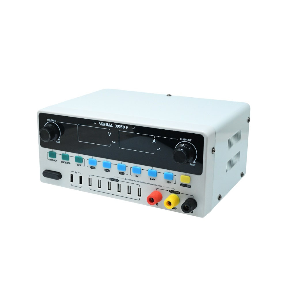 Το YIHUA 3005D-V διαθέτει σταθερές τάσεις γρήγορης πρόσβασης 5V, 8.4V και 12V, καθώς και τρεις θέσεις μνήμης (preset channels) που επιτρέπουν την αποθήκευση και άμεση εναλλαγή μεταξύ διαφορετικών ρυθμίσεων τάσης και ρεύματος, διευκολύνοντας σημαντικά την καθημερινή εργασία. Υποστηρίζει λειτουργία σταθερού ρεύματος (CC), αυτόματη διακοπή υπερέντασης και λειτουργία αυτόματης επανέναρξης, ώστε ο χρήστης να μπορεί να επιλέξει τη λειτουργία που ανταποκρίνεται καλύτερα στις ανάγκες της εφαρμογής του.