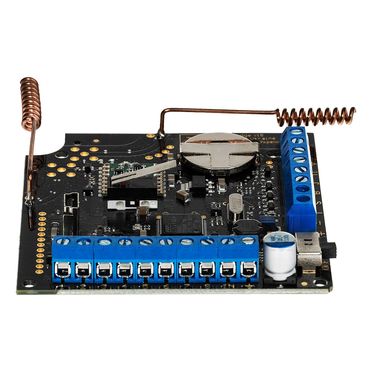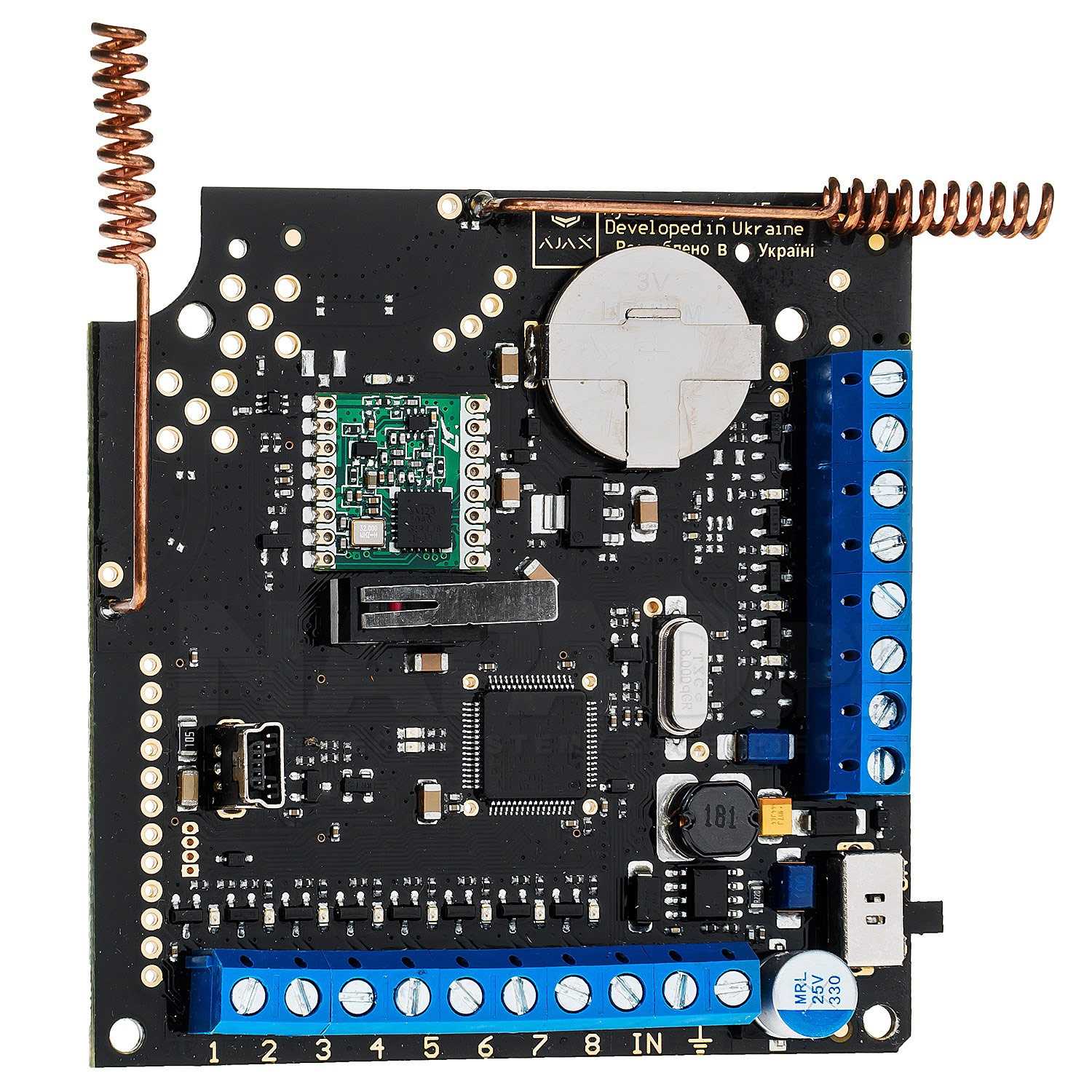 Πλήρης Έλεγχος και Sabotage Protection: Η μονάδα διαθέτει 8 προγραμματιζόμενες εξόδους (NO/NC) που αντιστοιχίζονται στους ασύρματους ανιχνευτές, καθώς και 4 εξειδικευμένες εξόδους service. Αυτές ενημερώνουν τον κεντρικό πίνακα για κρίσιμα σφάλματα όπως η παραβίαση του Tamper, η χαμηλή στάθμη μπαταρίας των ανιχνευτών ή η προσπάθεια παρεμβολής (Jamming) στο ασύρματο σήμα.