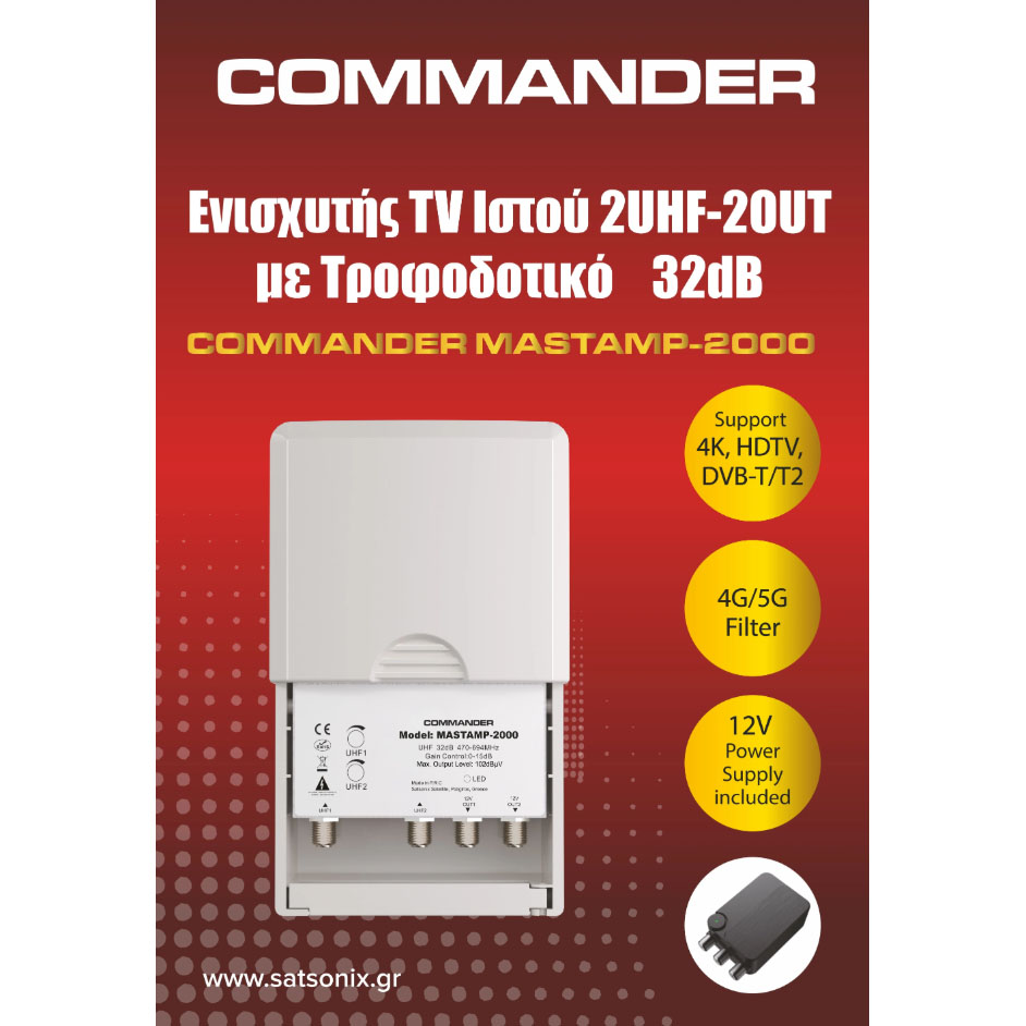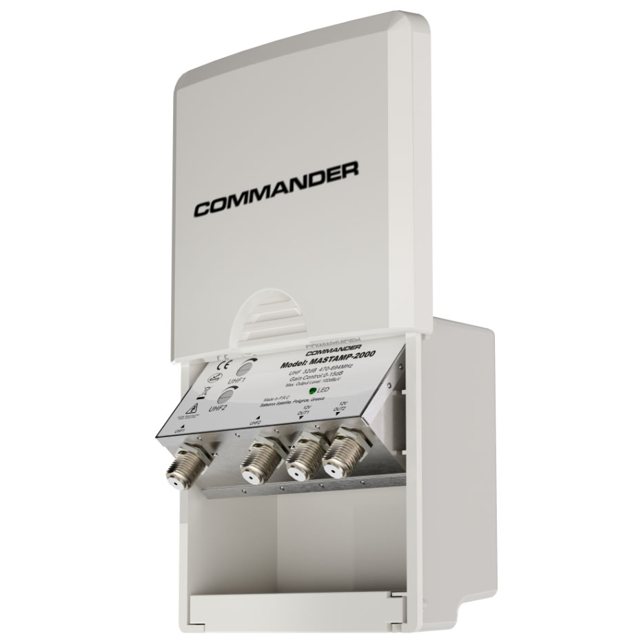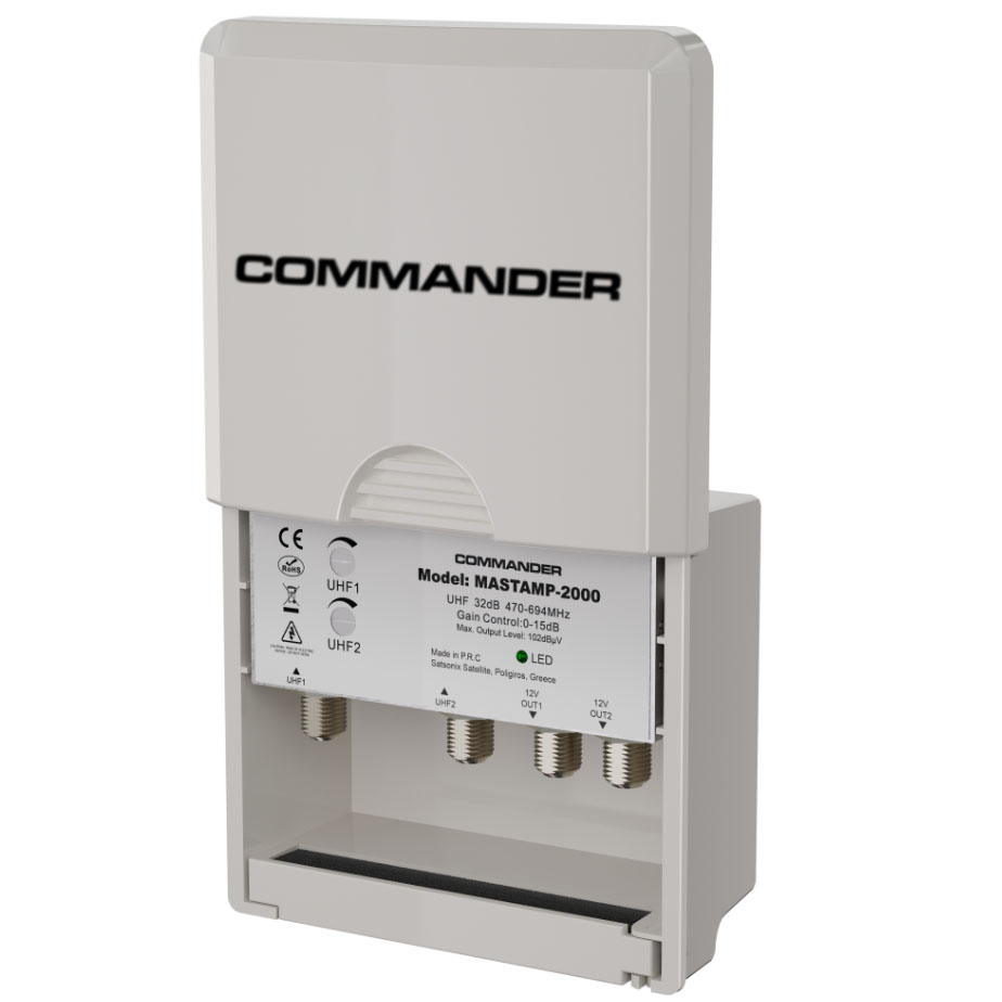 Ο COMMANDER MASTAMP-2000 είναι ένας ισχυρός ενισχυτής ιστού, ιδανικός για ατομικές εγκαταστάσεις επίγειου ψηφιακού σήματος όπου απαιτείται επιπλέον ενίσχυση. Διαθέτει 2 εισόδους UHF και 2 εξόδους, προσφέροντας ευελιξία στη σύνδεση και διανομή του σήματος.