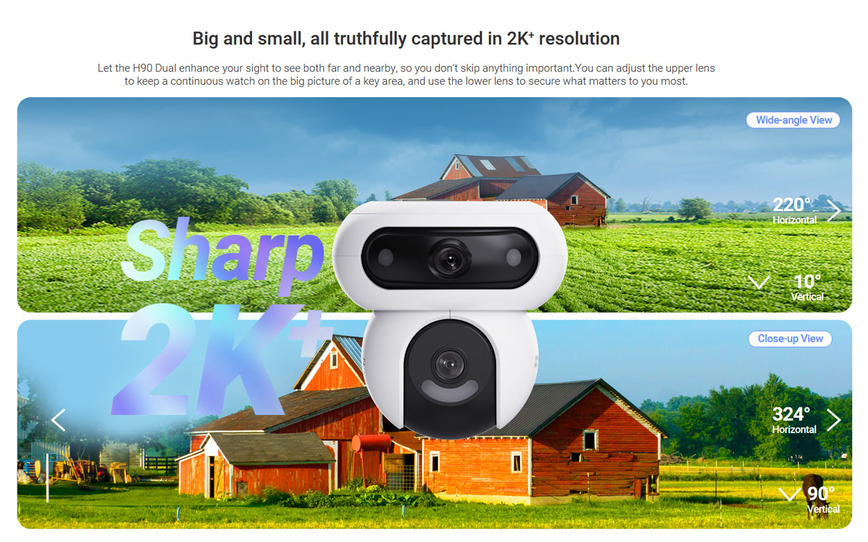 - Διπλή Ανάλυση 2K⁺ (5MP+5MP): Κορυφαία ευκρίνεια 2880 × 1620 και στους δύο φακούς για αναγνώριση λεπτομερειών σε μεγάλες αποστάσεις.