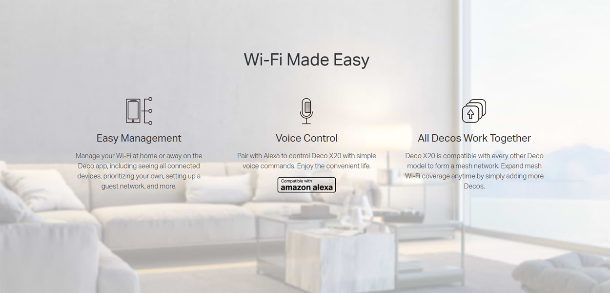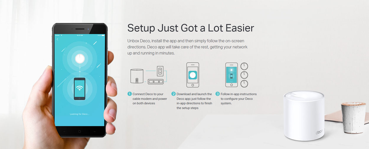 Με μοντέρνο και διακριτικό σχεδιασμό, ευέλικτες επιλογές λειτουργίας όπως Router Mode & Access Point Mode, καθώς και υποστήριξη για smart home περιβάλλοντα, το Deco X20 αποτελεί μια ολοκληρωμένη λύση για αξιόπιστο και γρήγορο Wi-Fi σε κάθε σύγχρονο σπίτι.